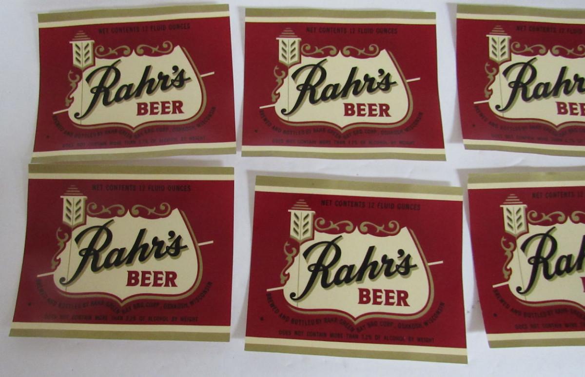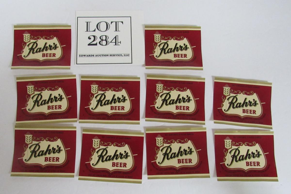 10 Vintage Rahr's Beer Bottle Labels, Nice