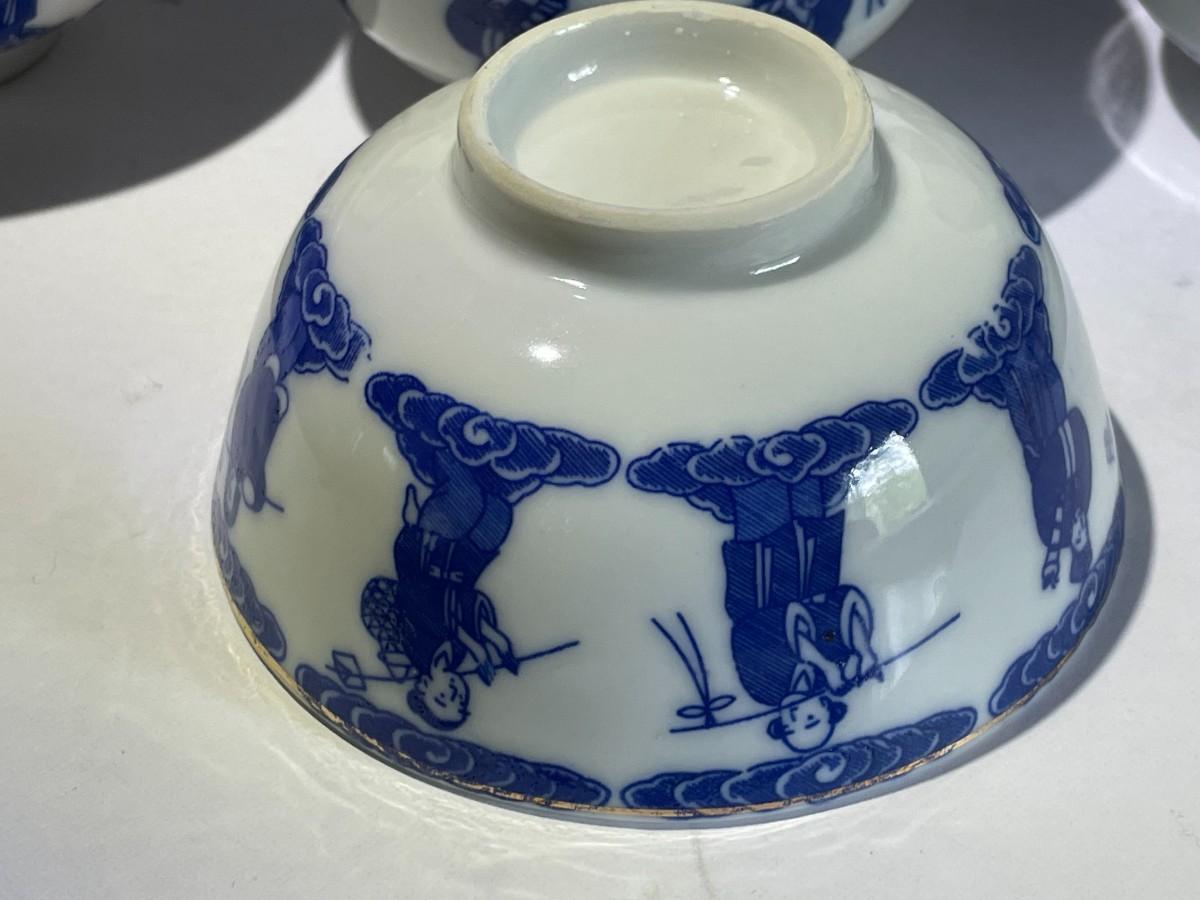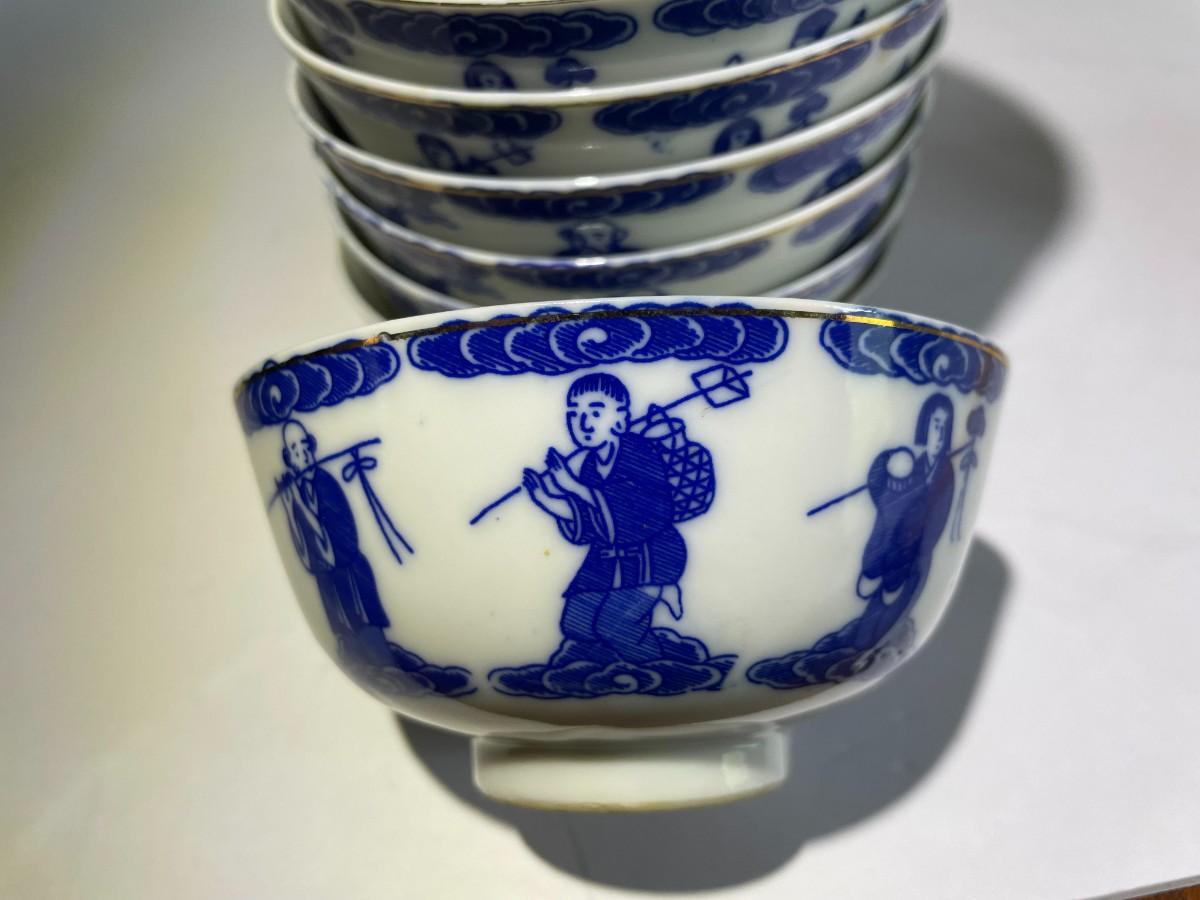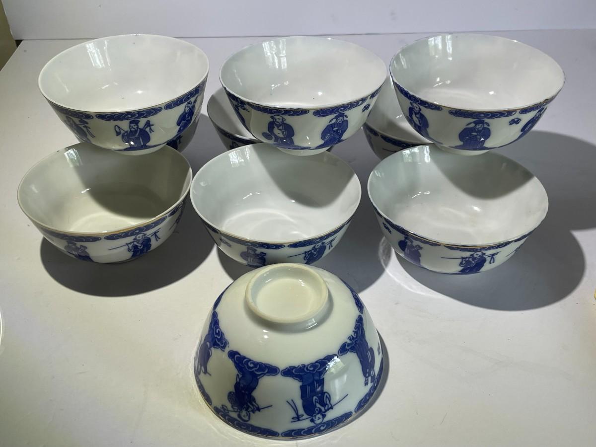 10 Vintage/Antique Chinese Immortal Blue/White Porcelain Rice Bowls 4" Diameter in Good Preowned Condition. $15 Domestic Shipping.