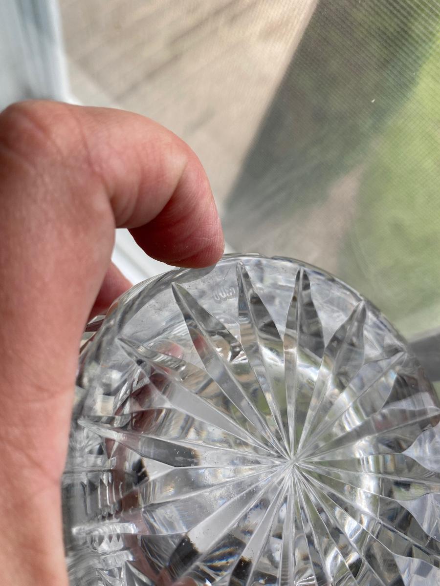 This vase is stamped with the gothic style Waterford mark. Beautiful vase with one small chip