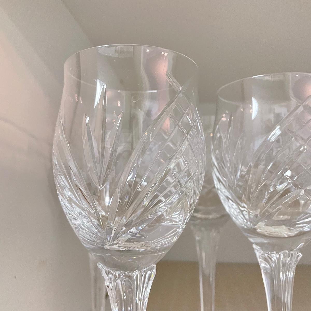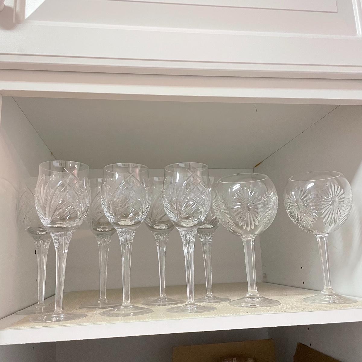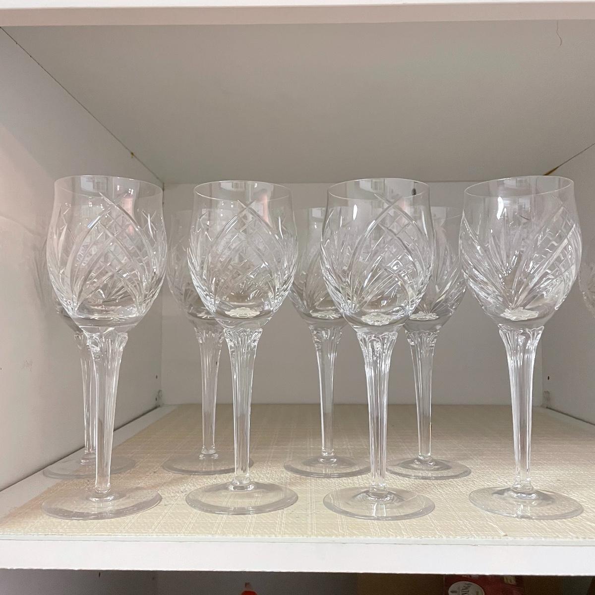 Two large 8” toasting glasses marked Waterford. Eight more wine glasses marked Marquis by Waterford. Shipping available.