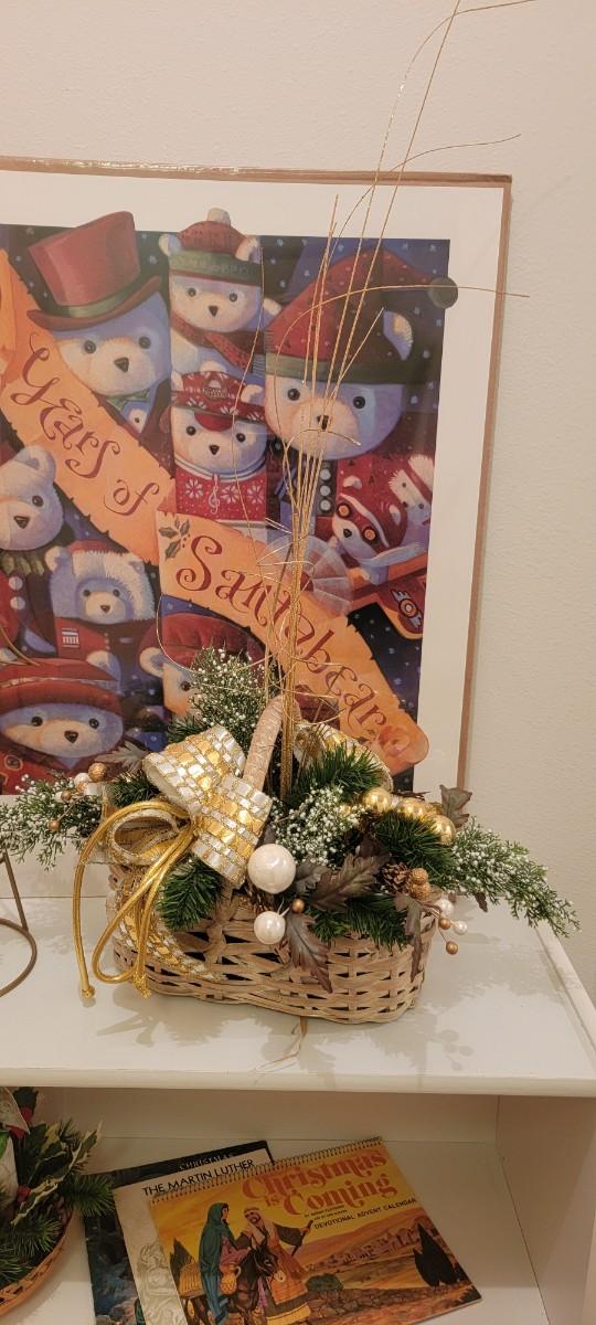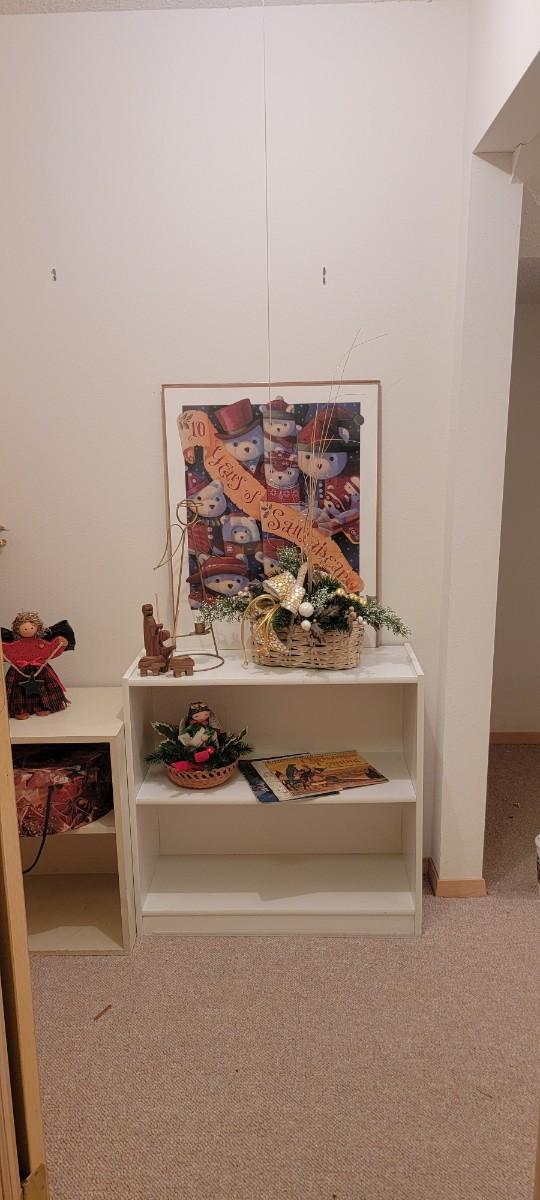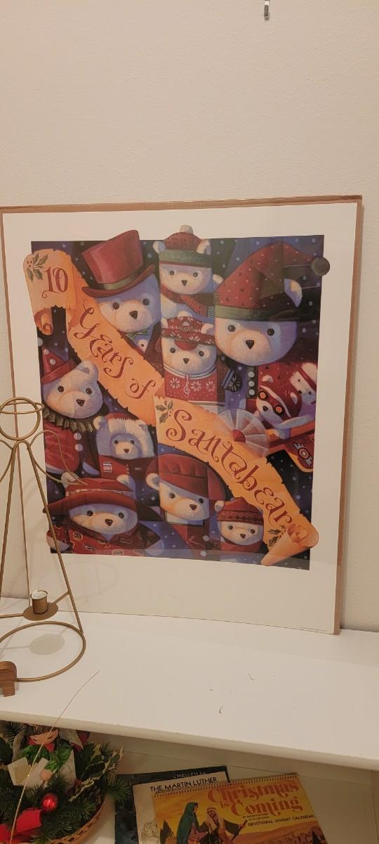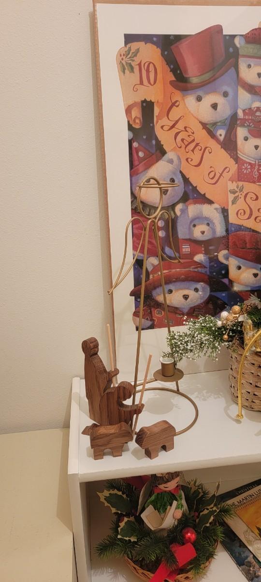 10 years of Santabear, wood manger scene, plus shelf 28" x 11.5" X 30"