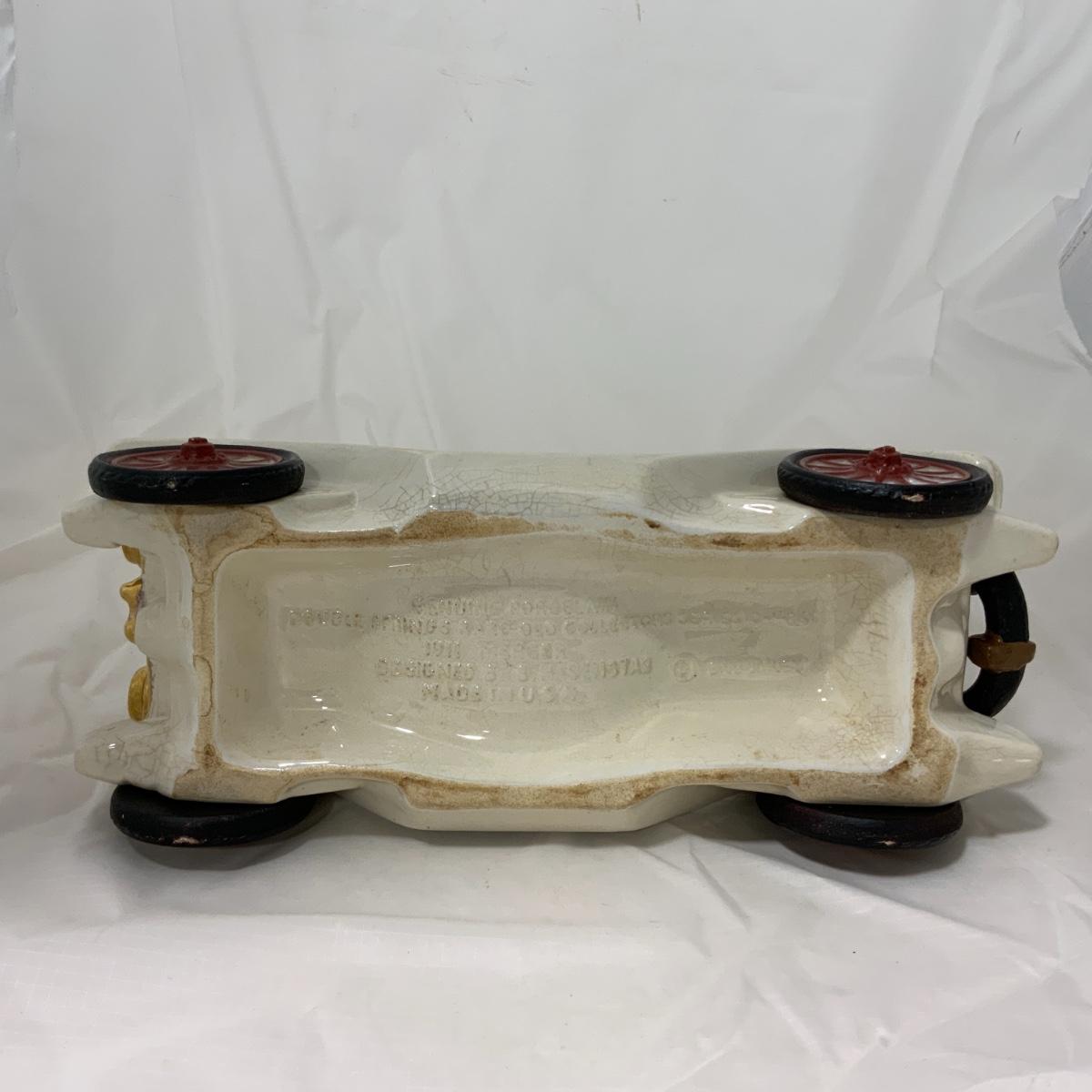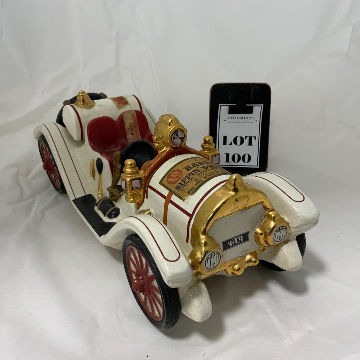 From the Estate of Peter Radovanovich: 1911 Mercer Raceabout Decanter *Empty*. Porcelain container. The label reads “Sipping Whiskey”. The cork, due to age, has broken off, but the piece still sits well, the cork could be replaced if you wish. Please see photos for details and condition. ::: Shipping is available on this lot. If you require shipping you must let us know at the close of the auction. We will coordinate with you after the item has been won. Shipping fees will include insurance up to or exceeding the value of all items being mailed. If you have any questions regarding this lot please contact the auctioneer either via this website, by direct email or by phone. PICK UP TIMES and other important information can be found in the TERMS and DESCRIPTION of the auction. Please take a look for pertinent information. Thanks!