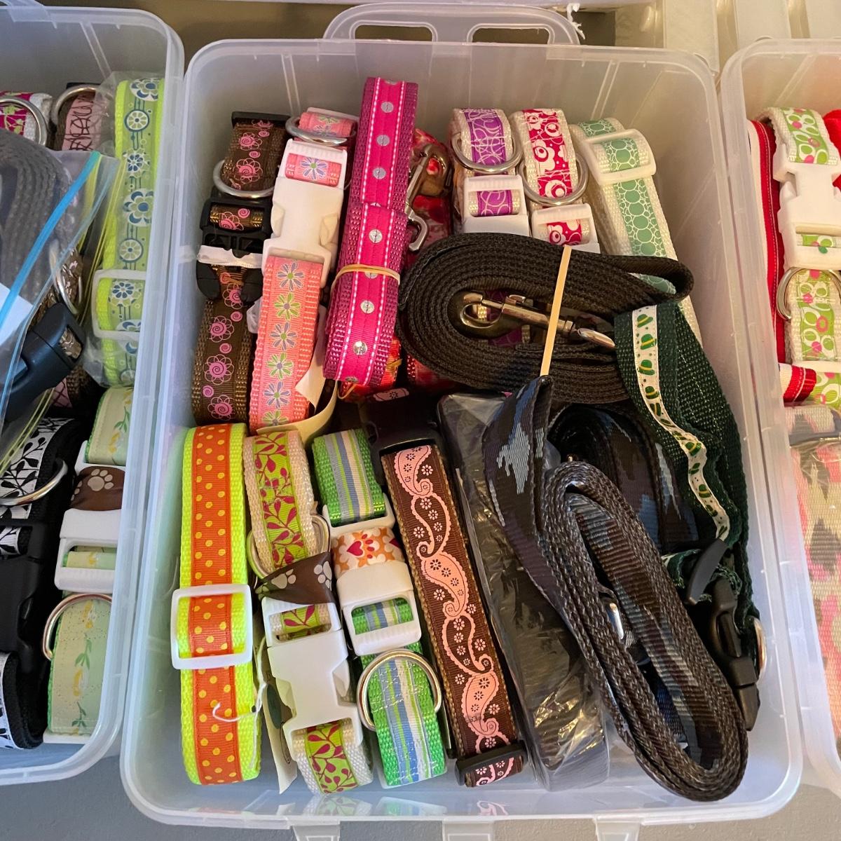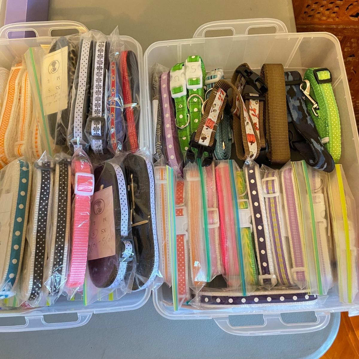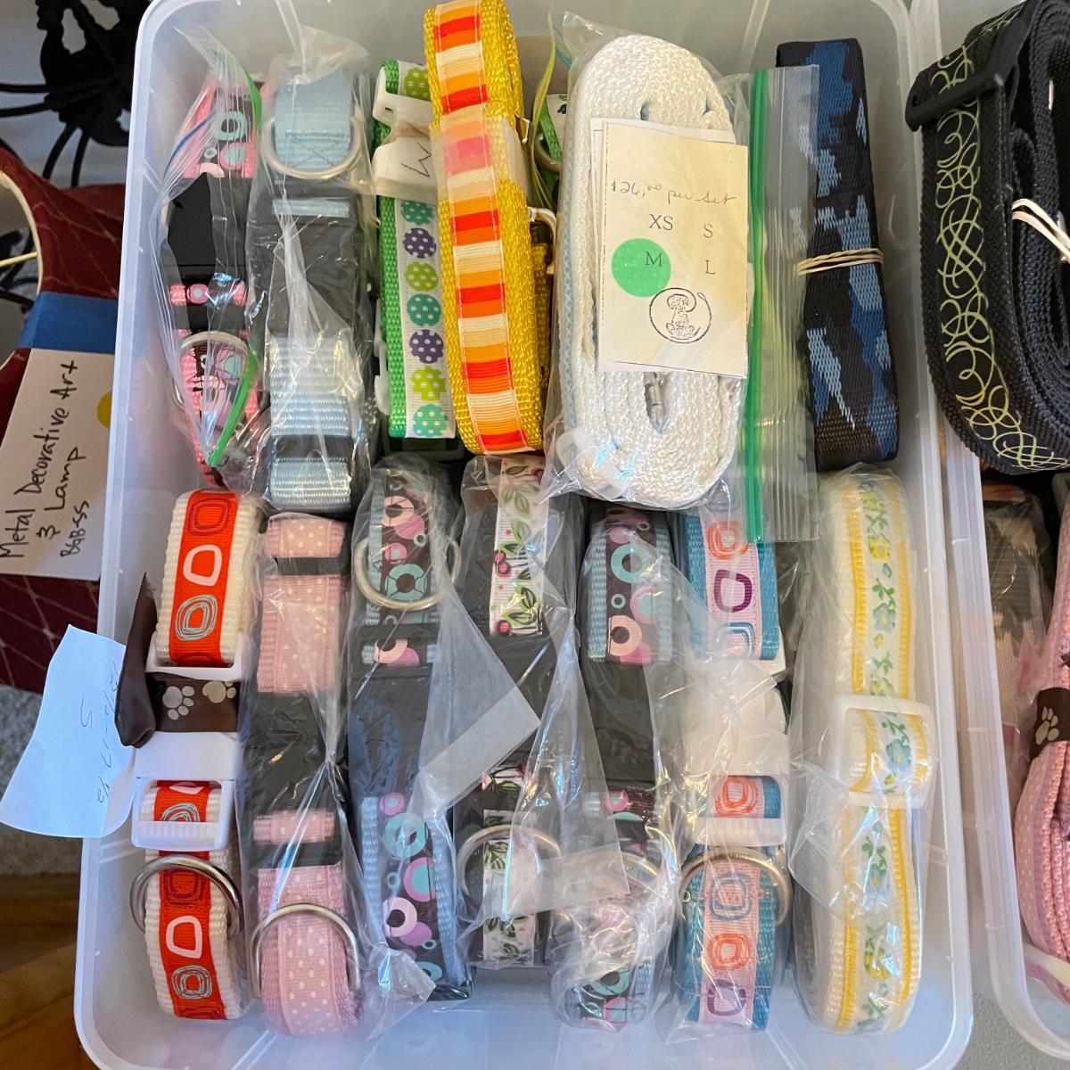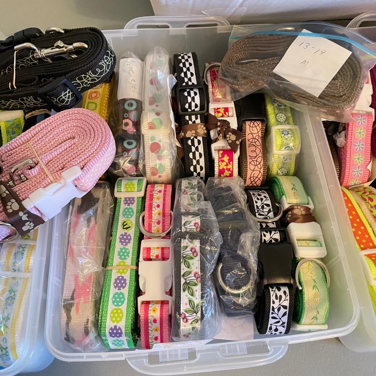 Nine bins full of mostly leash/collar combos. Each bin measures 14”x 9.5” x 4.25”H. Some are only leashes and some are only collars. Many have size info on them, perfect for reselling. Lot also features around 60 plastic cases for wrapping the collars. The solo items and the size small combo fits well in the case, the medium and large combos are too big for the case. Shipping available. Shipping can be costly. We suggest contacting our preferred local shipping provider, Postage Express, with dimensions and getting an estimate before bidding: (828) 255-9250 or email shipping@postageexpressnc.com.