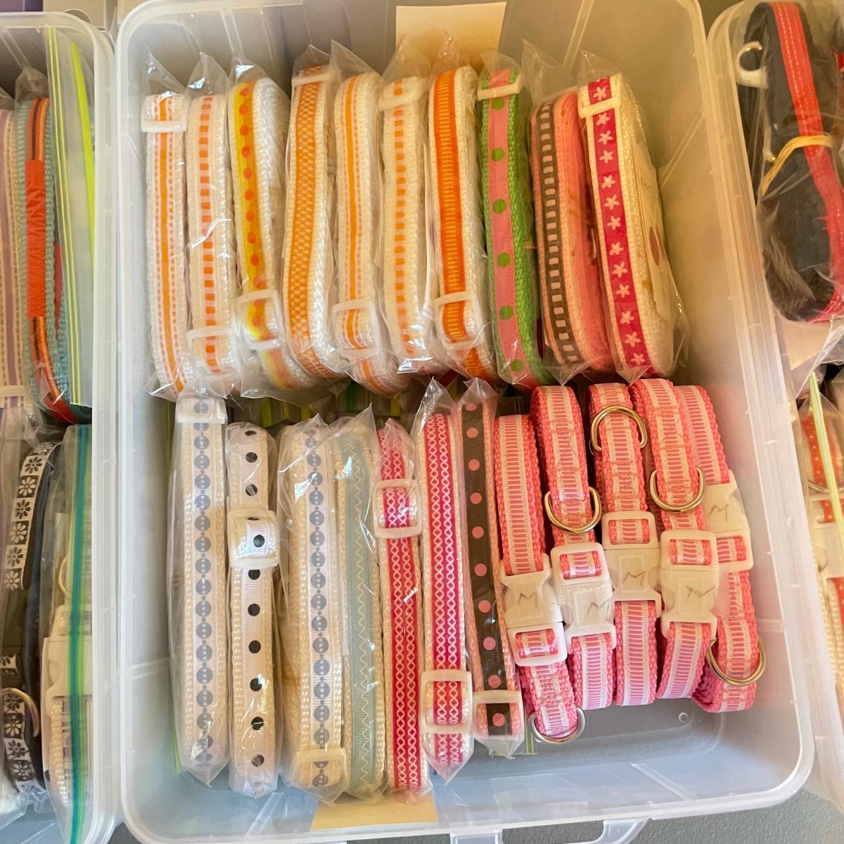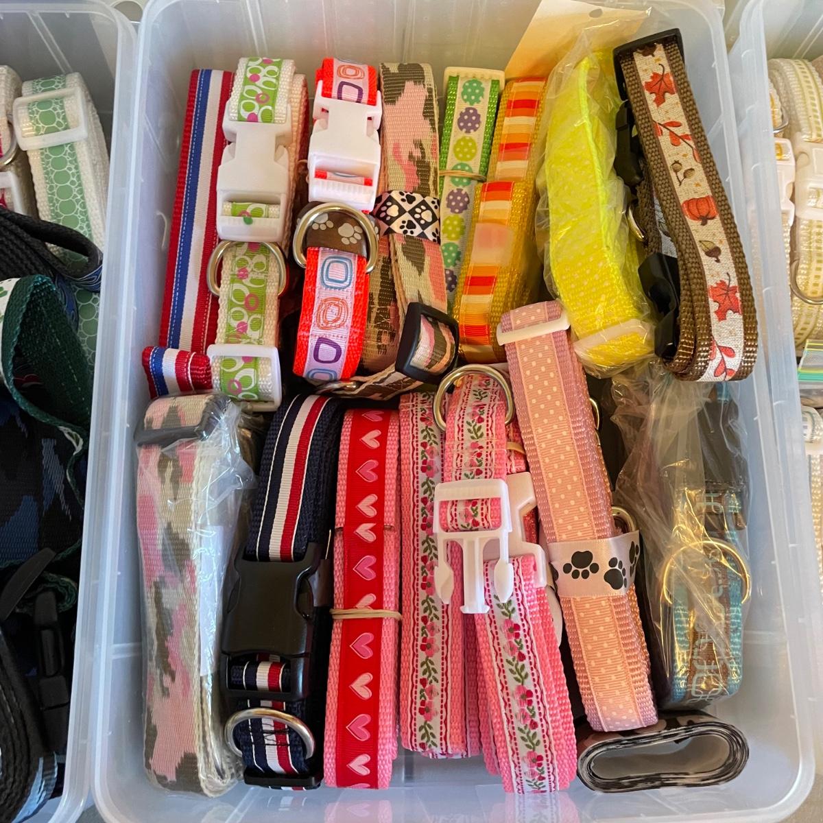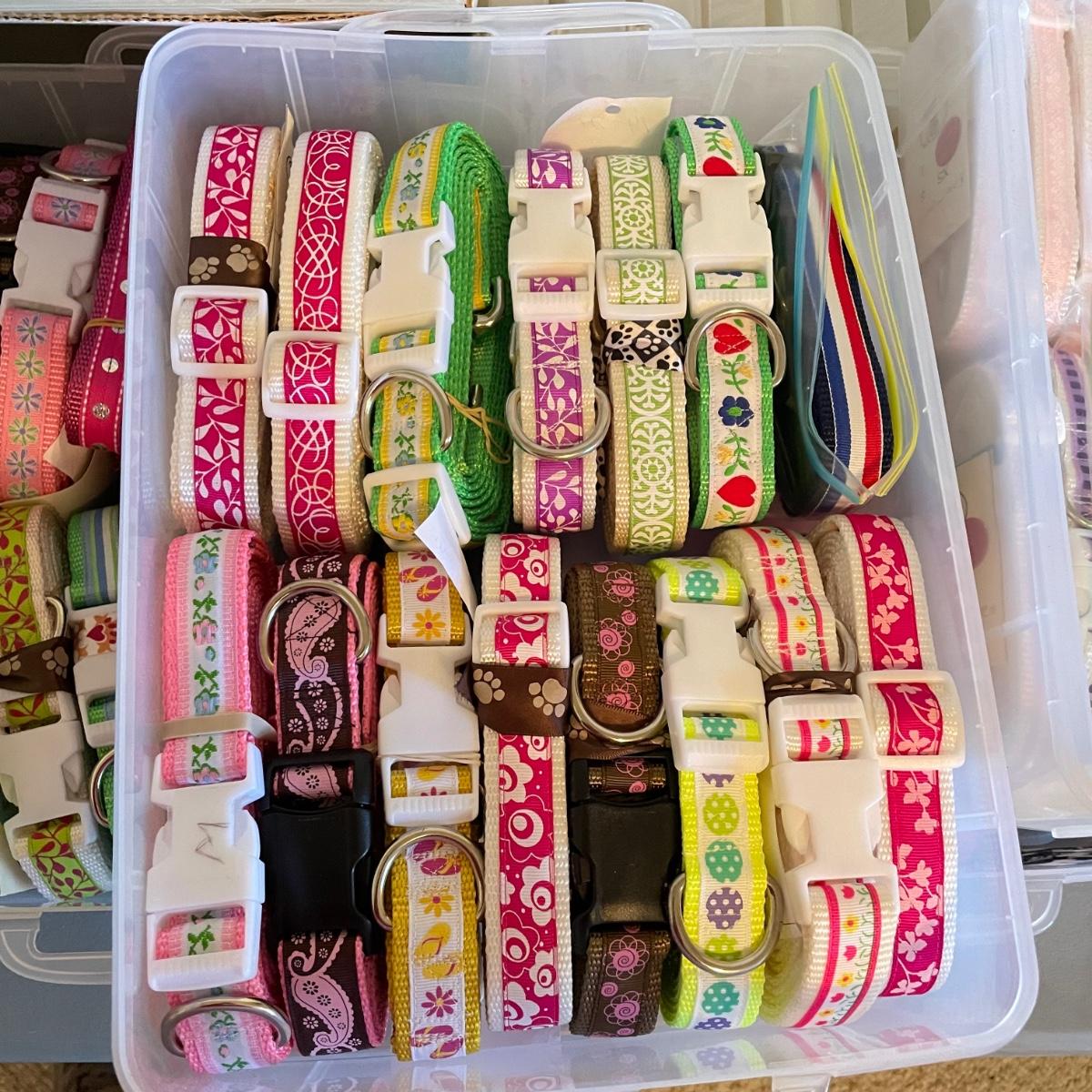 Nine bins full of mostly leash/collar combos. Each bin measures 14”x 9.5” x 4.25”H. Some are only leashes and some are only collars. Many have size info on them, perfect for reselling. Lot also features around 60 plastic cases for wrapping the collars. The solo items and the size small combo fits well in the case, the medium and large combos are too big for the case. Shipping available. Shipping can be costly. We suggest contacting our preferred local shipping provider, Postage Express, with dimensions and getting an estimate before bidding: (828) 255-9250 or email shipping@postageexpressnc.com.
