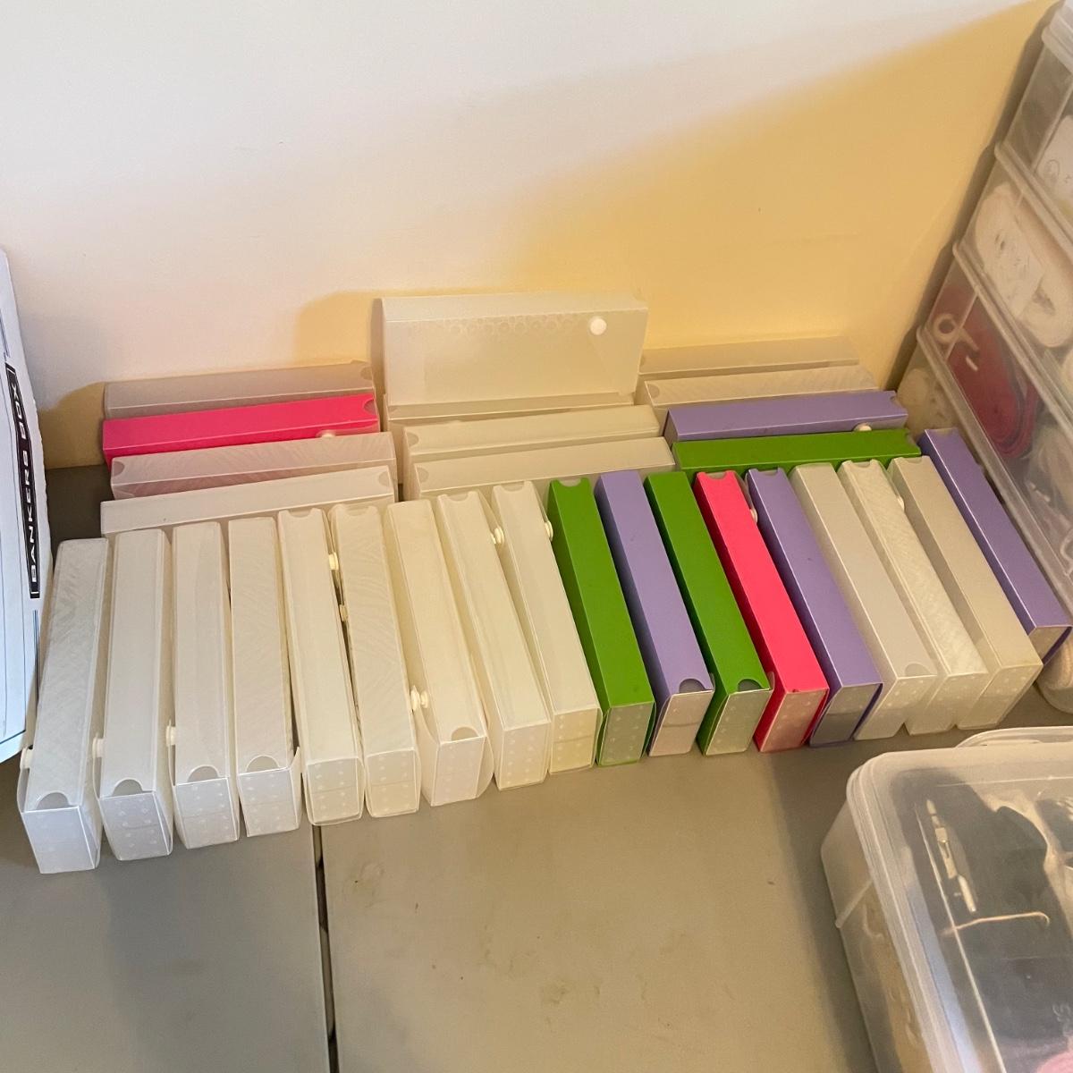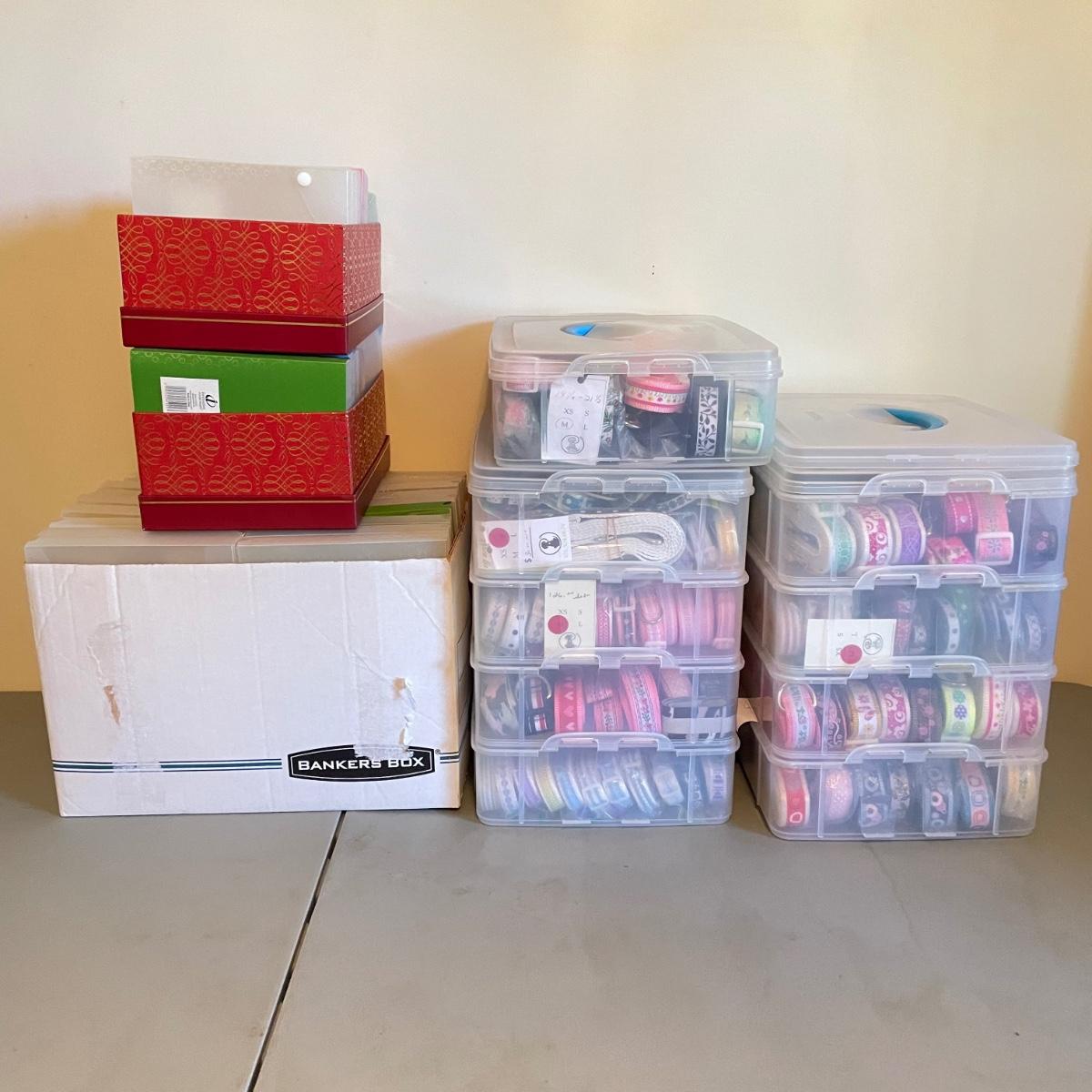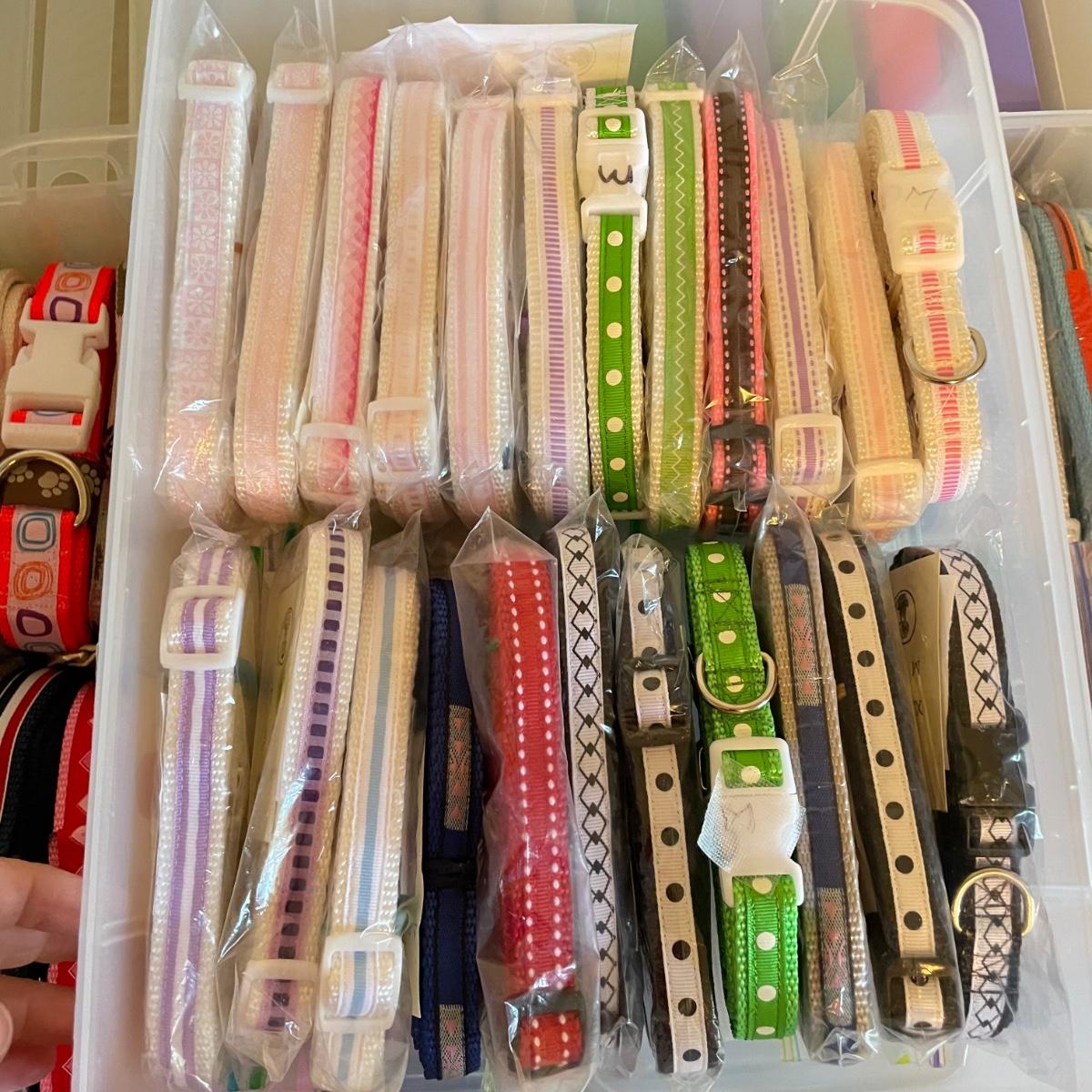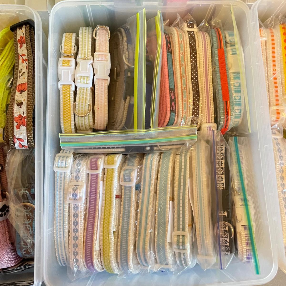 Nine bins full of mostly leash/collar combos. Each bin measures 14”x 9.5” x 4.25”H. Some are only leashes and some are only collars. Many have size info on them, perfect for reselling. Lot also features around 60 plastic cases for wrapping the collars. The solo items and the size small combo fits well in the case, the medium and large combos are too big for the case. Shipping available. Shipping can be costly. We suggest contacting our preferred local shipping provider, Postage Express, with dimensions and getting an estimate before bidding: (828) 255-9250 or email shipping@postageexpressnc.com.