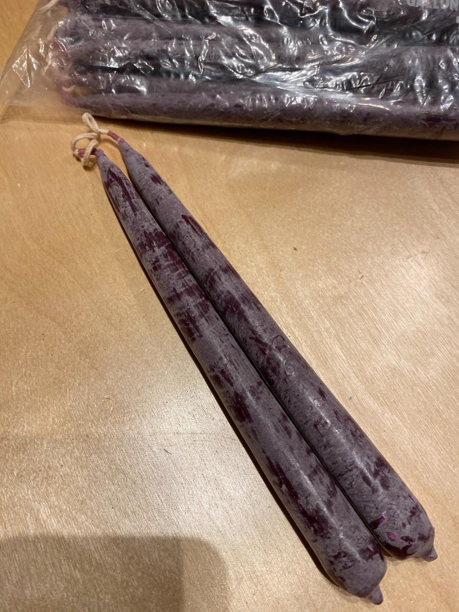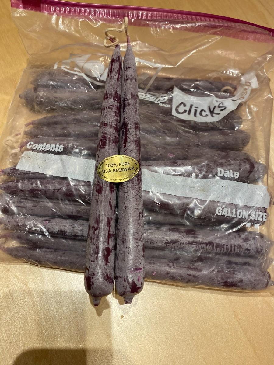 Ten (10) pairs of red colored hand dipped 100% beeswax tapers/candles.