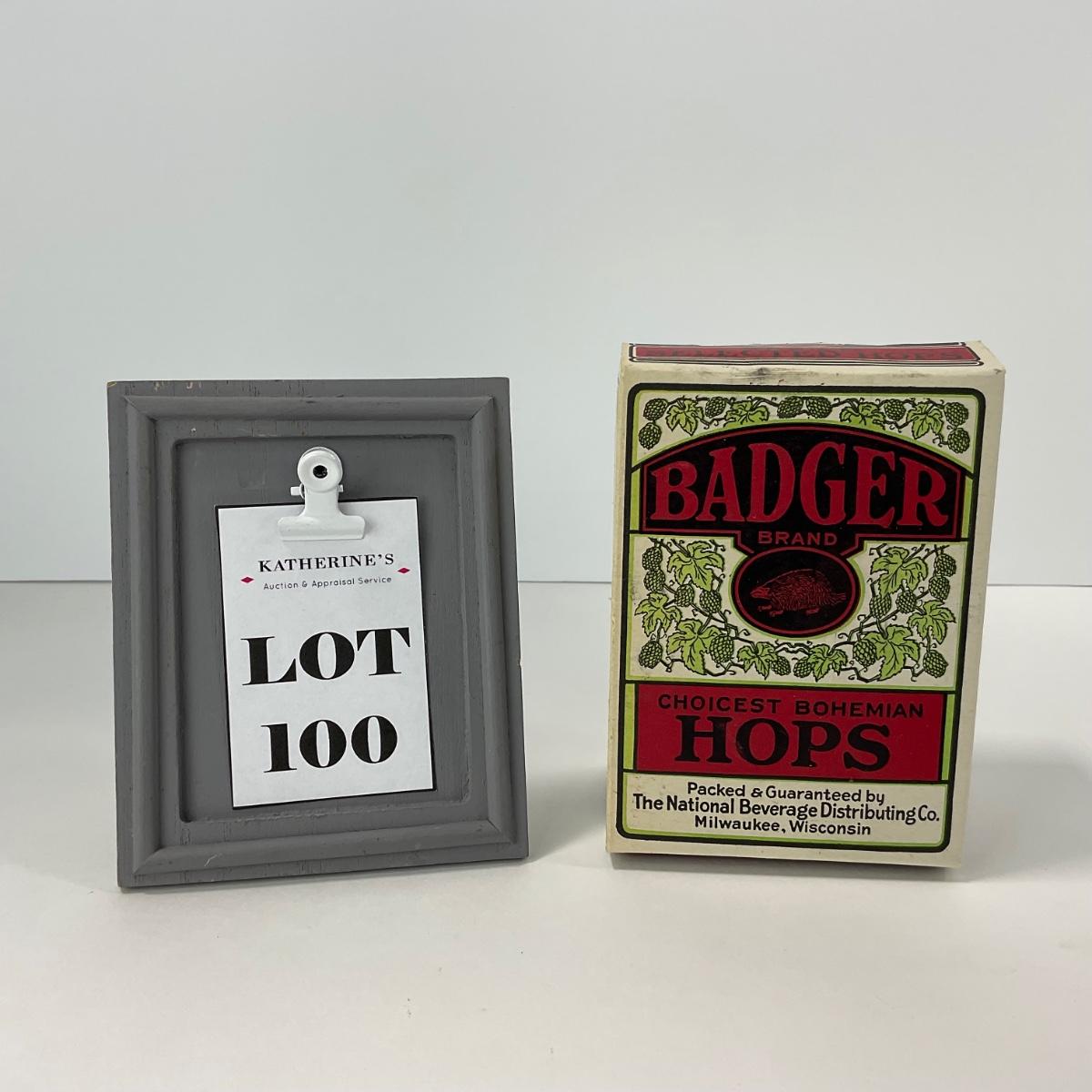 One vintage pre prohibition Badger Brand Hops box. Please see photos for details and condition. ::: Shipping is available on this lot. If you require shipping you must let us know at the close of the auction. We will coordinate with you after the item has been won. Shipping fees will include insurance up to or exceeding the value of all items being mailed. If you have any questions regarding this lot please contact the auctioneer either via this website, by direct email or by phone. PICK UP TIMES and other important information can be found in the TERMS and DESCRIPTION of the auction. Please take a look for pertinent information. Thanks!