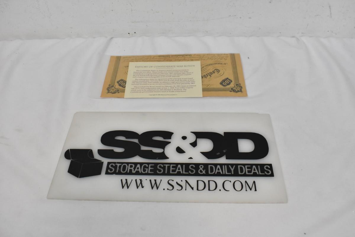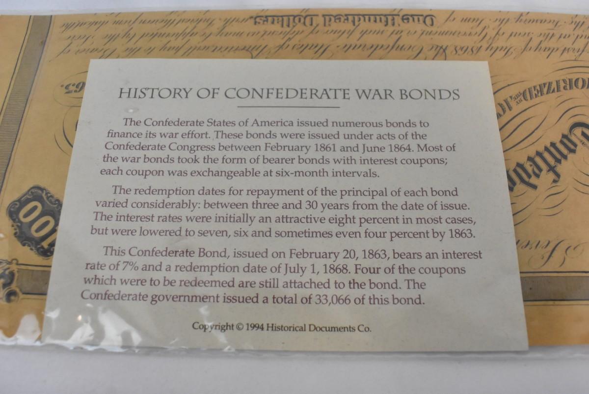 $100 Confederate War Bond 1863 Genuine Replica on Antiqued Parchment 1994 Print