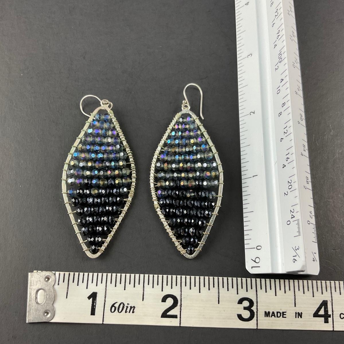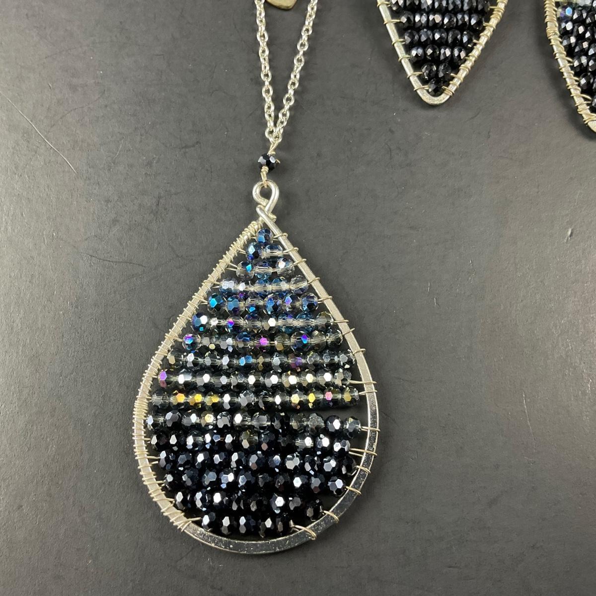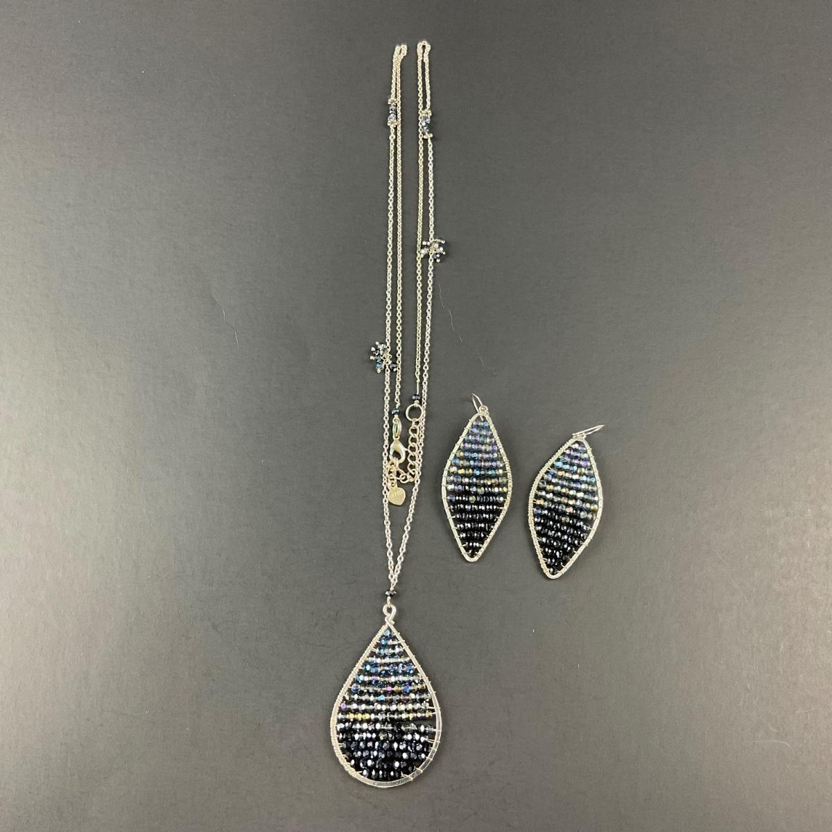 -100- COSTUME JEWELRY | Blue Beaded Necklace & Earrings Set | Marked