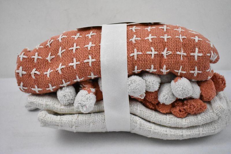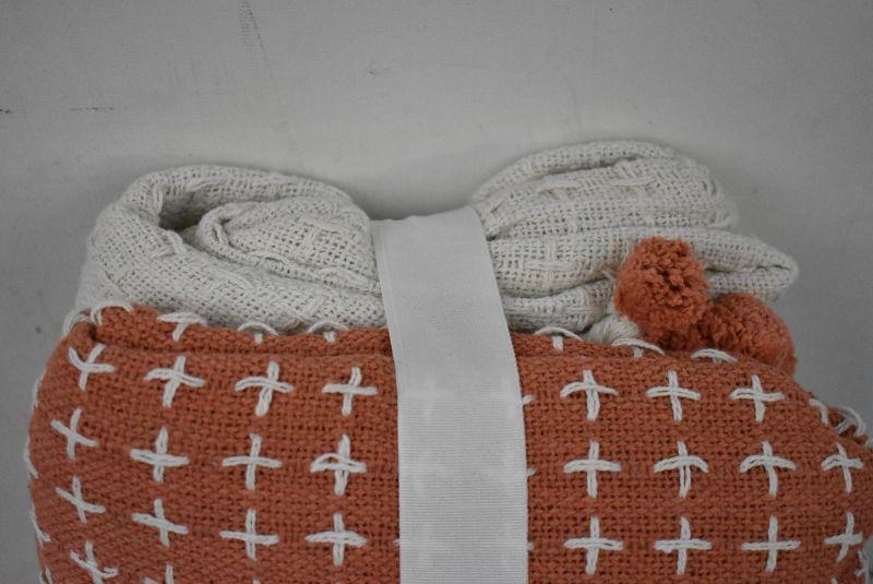 100% Cotton Throw Blankets with Pom Poms, 50" x 60", Rust, 2 Pack - New