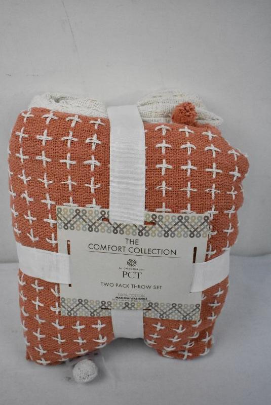 Comfort Collection 100% Cotton Throw Blankets with Pom Poms, 50" x 60", Rust, 2 Pack - New