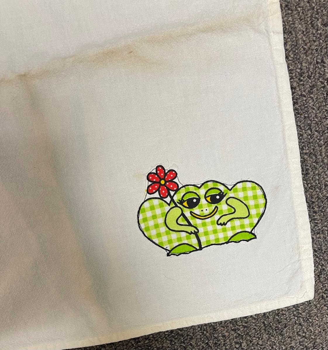 100.% Cotton Vintage Tea / Kitchen towel Green Frog design