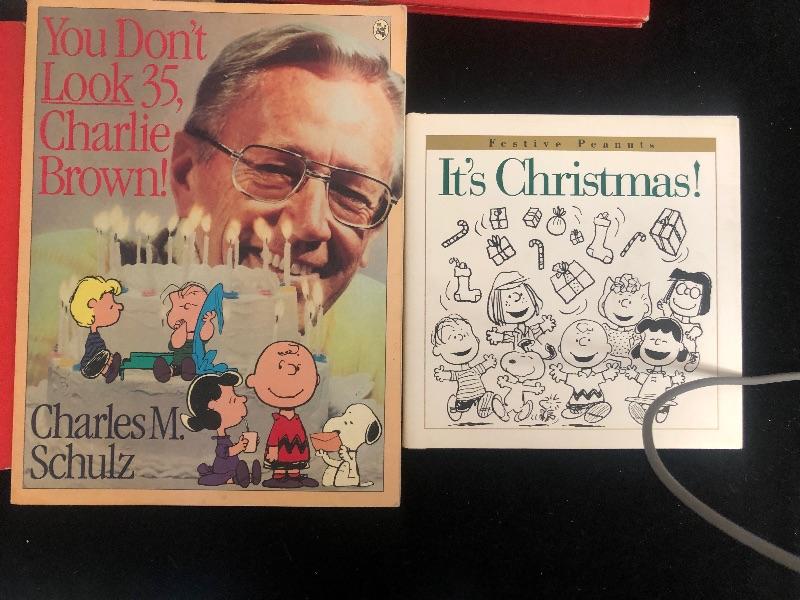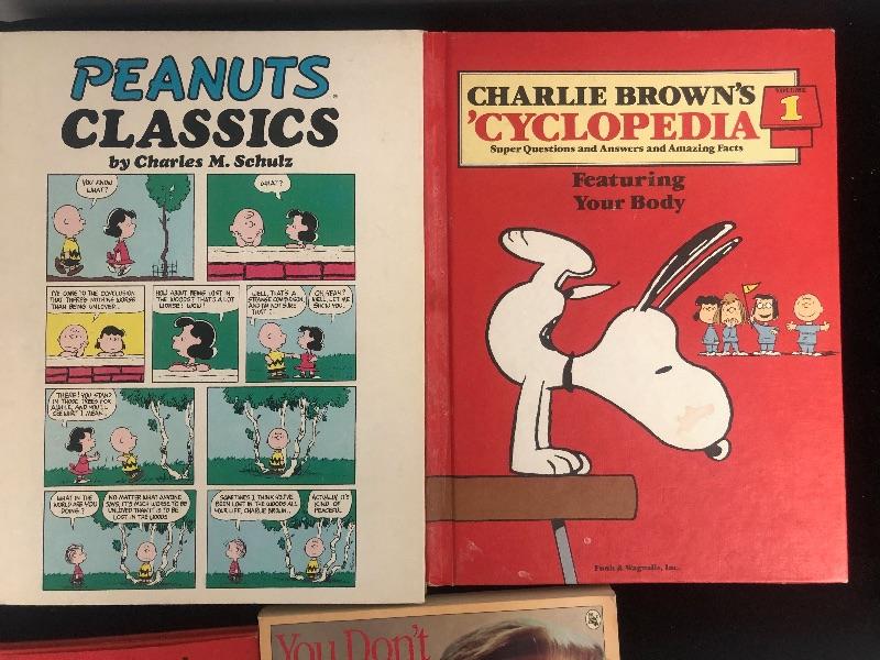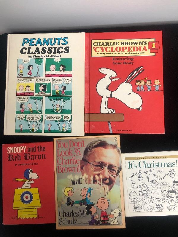 Bundle includes peanuts classic, Charlie Brown Cyclopedia, Snoopy and the red baron, you don't look 35 Charlie Brown and it's Christmas books are in used condition.