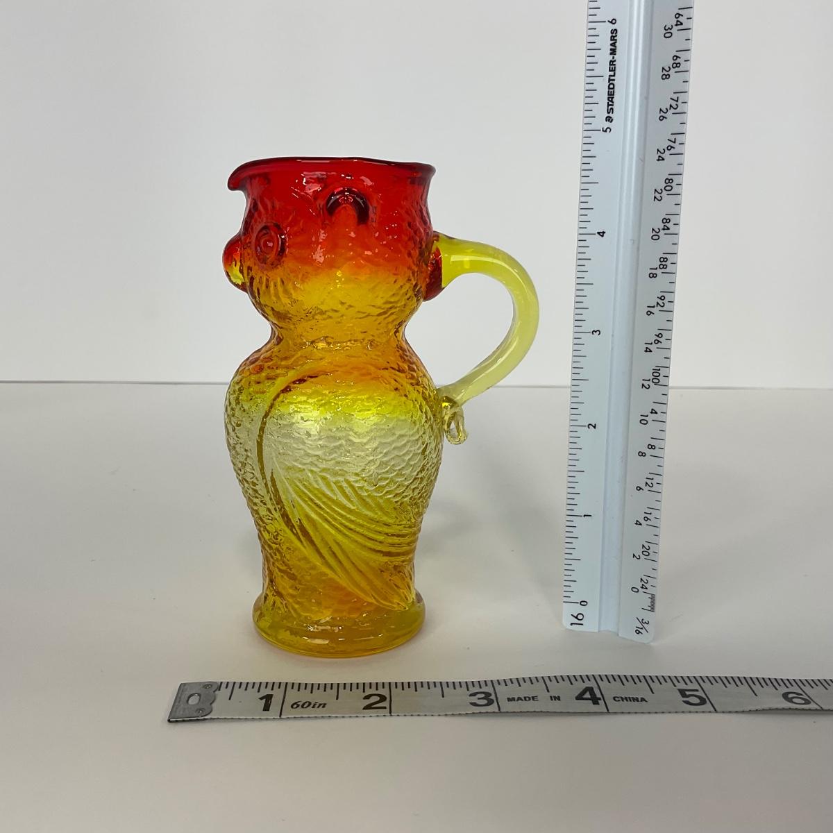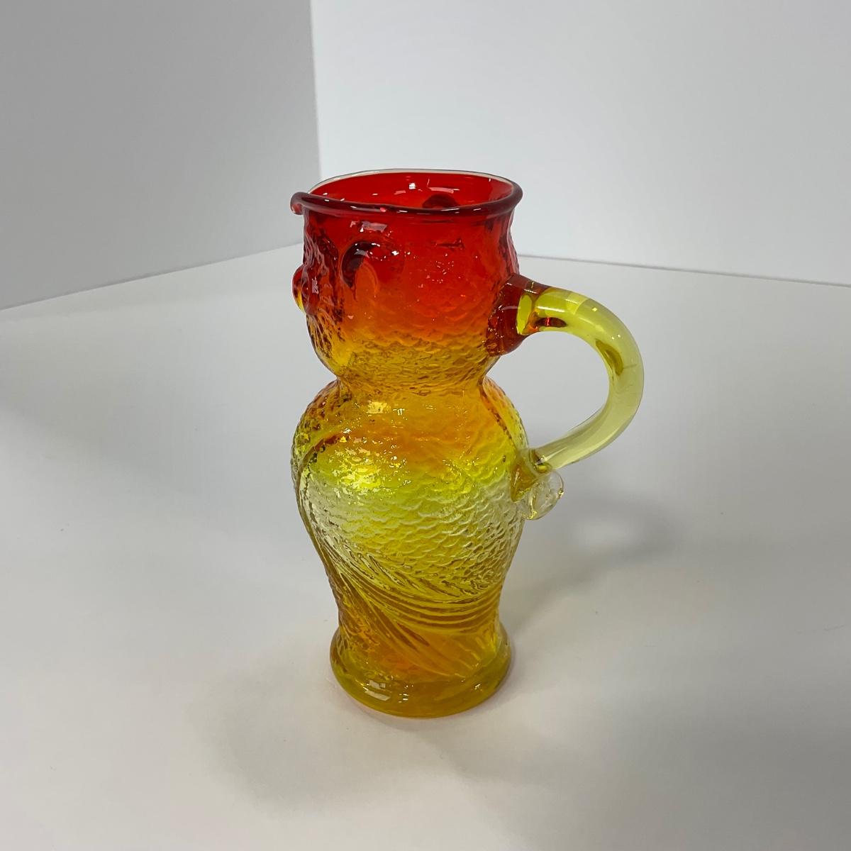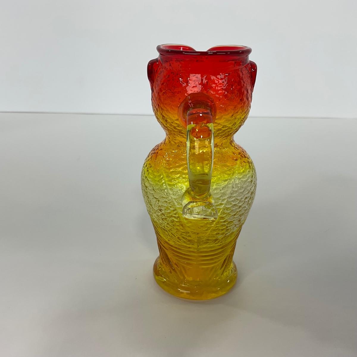-100- GLASSWARE | Vintage Kanawha Hand Blown Amberina Owl Pitcher