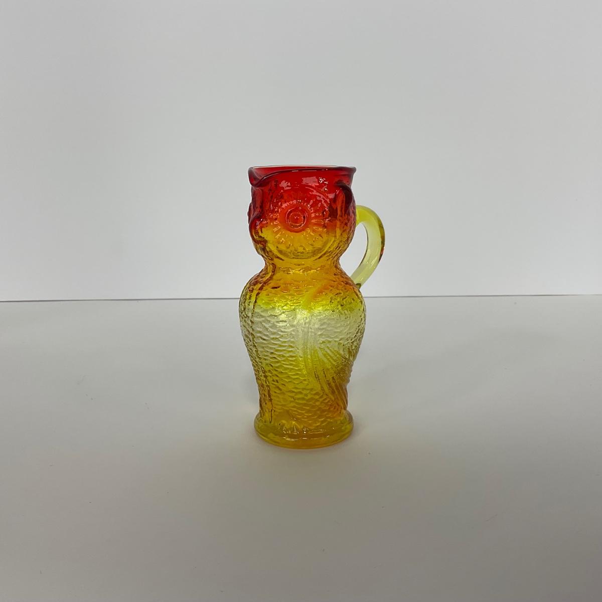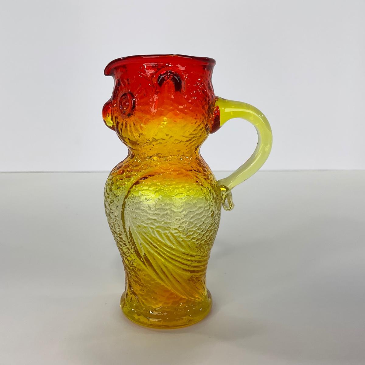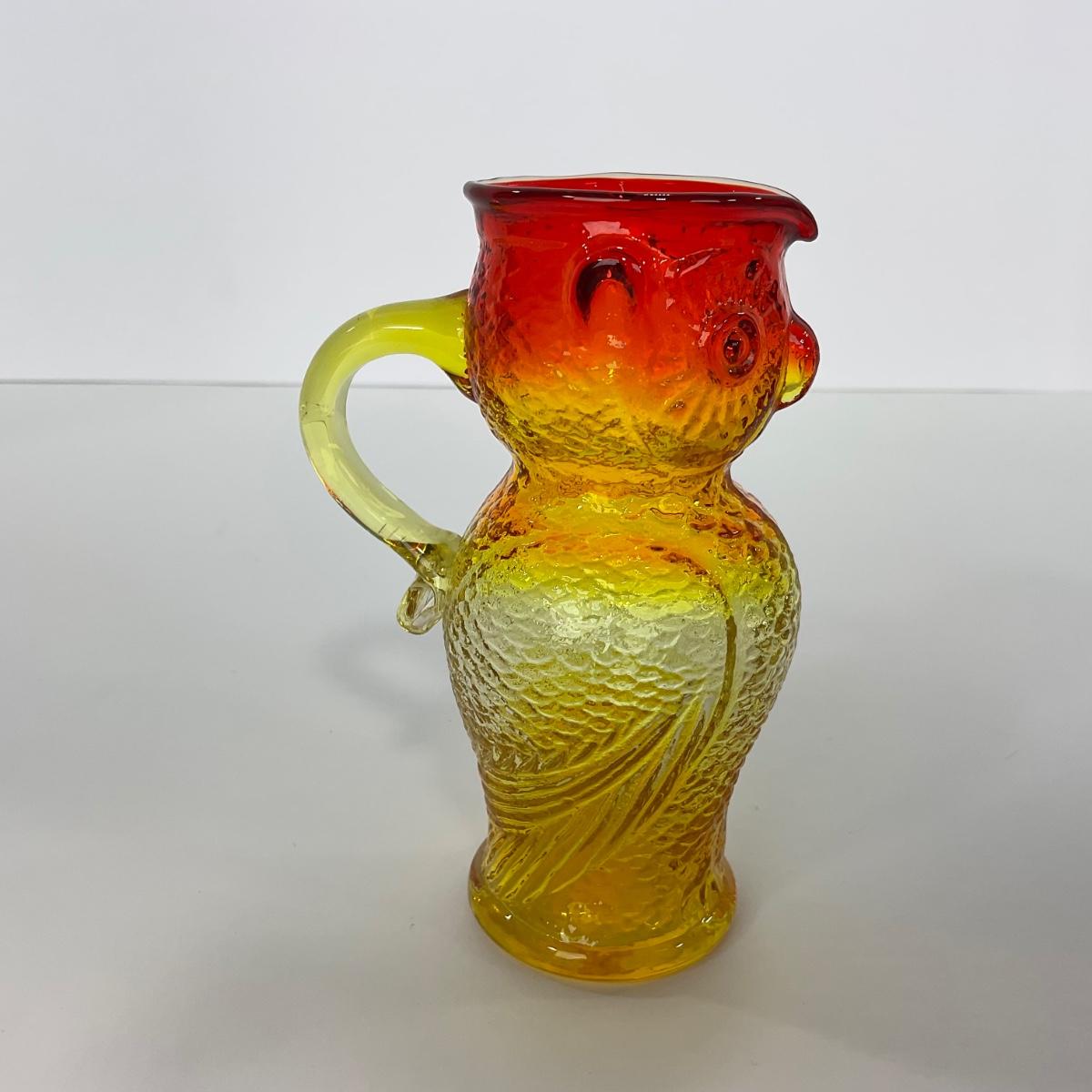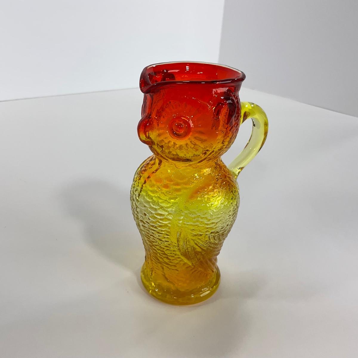 -100- GLASSWARE | Vintage Kanawha Hand Blown Amberina Owl Pitcher