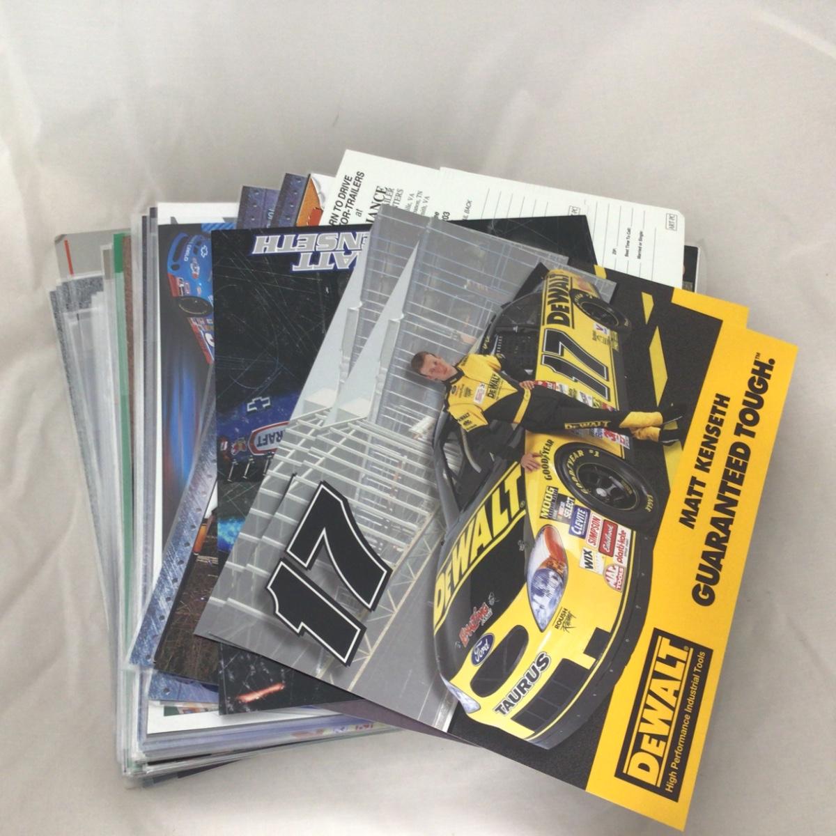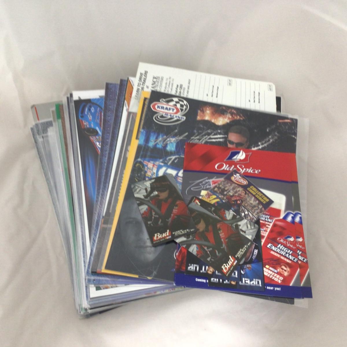 Mixed group of NASCAR driver cards and papers. Please see photos for details and condition. ::: Shipping is available on this lot. If you require shipping you must let us know at the close of the auction. We will coordinate with you after the item has been won. Shipping fees will include insurance up to or exceeding the value of all items being mailed. If you have any questions regarding this lot please contact the auctioneer either via this website, by direct email or by phone. PICK UP TIMES and other important information can be found in the TERMS and DESCRIPTION of the auction. Please take a look for pertinent information. Thanks!