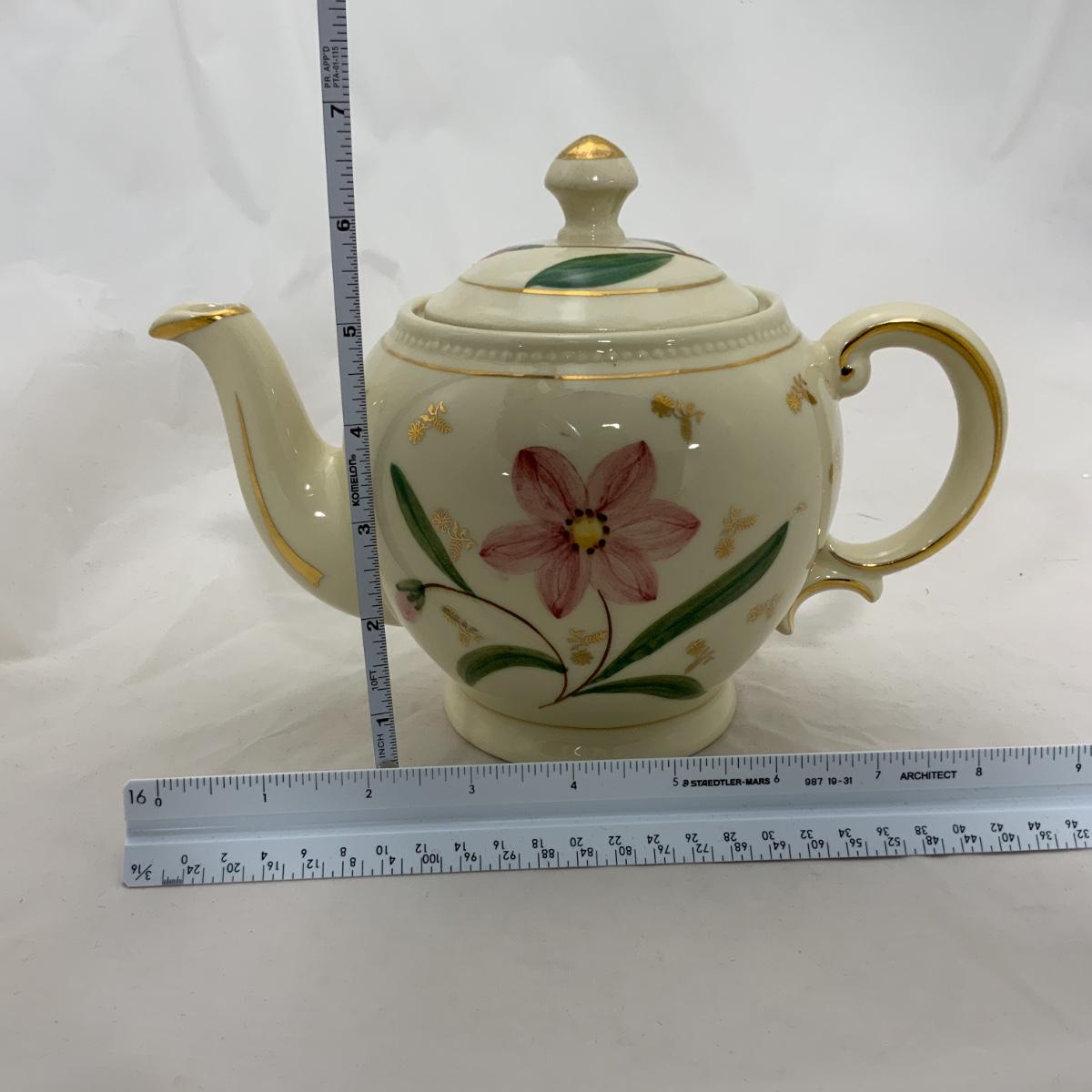 -100- SHAWNEE | 1950s Flower | Tea Pot | Gold Accent