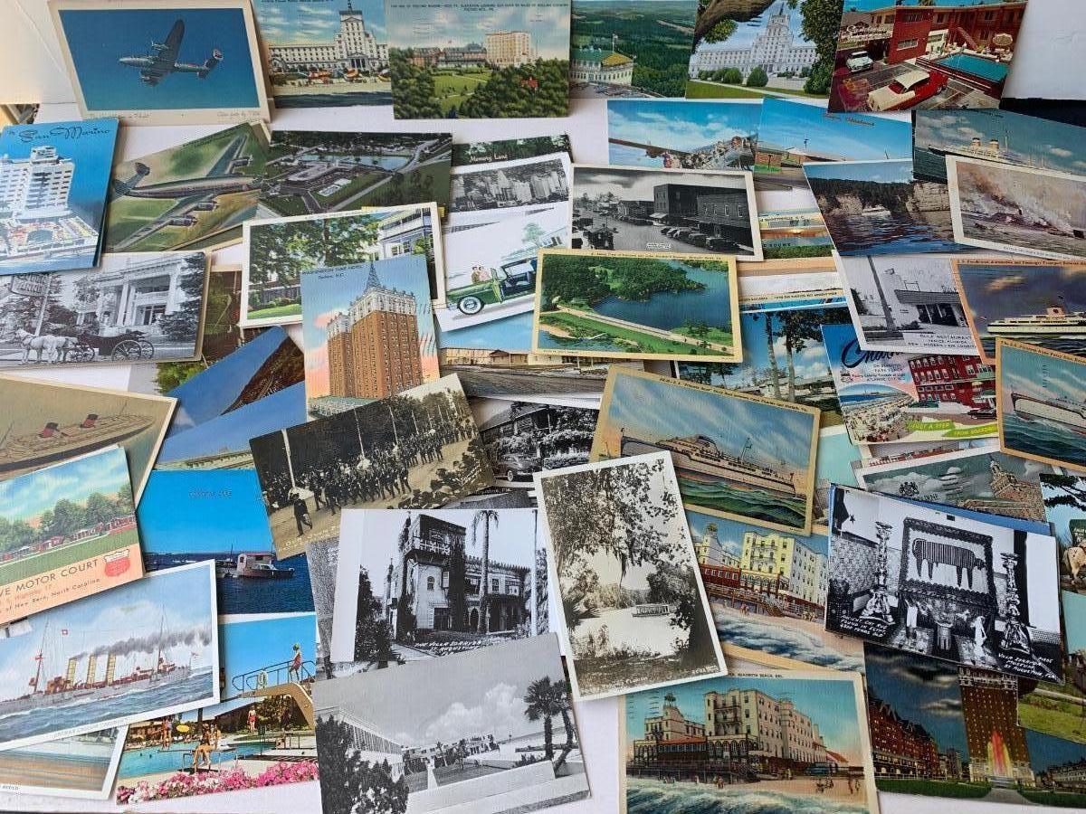 100+ Vintage Postcards Lot - Linens Real Photo Chromes Transportation Travel +++