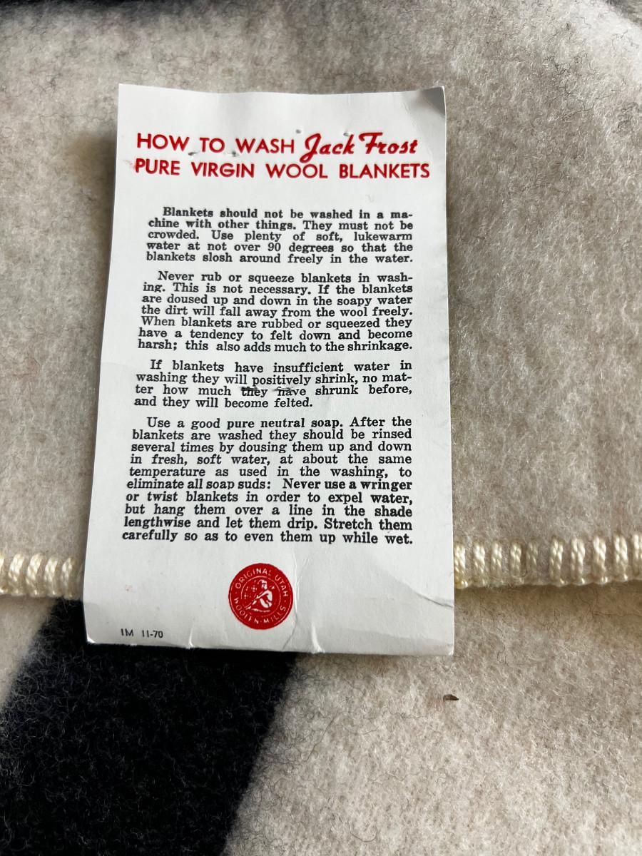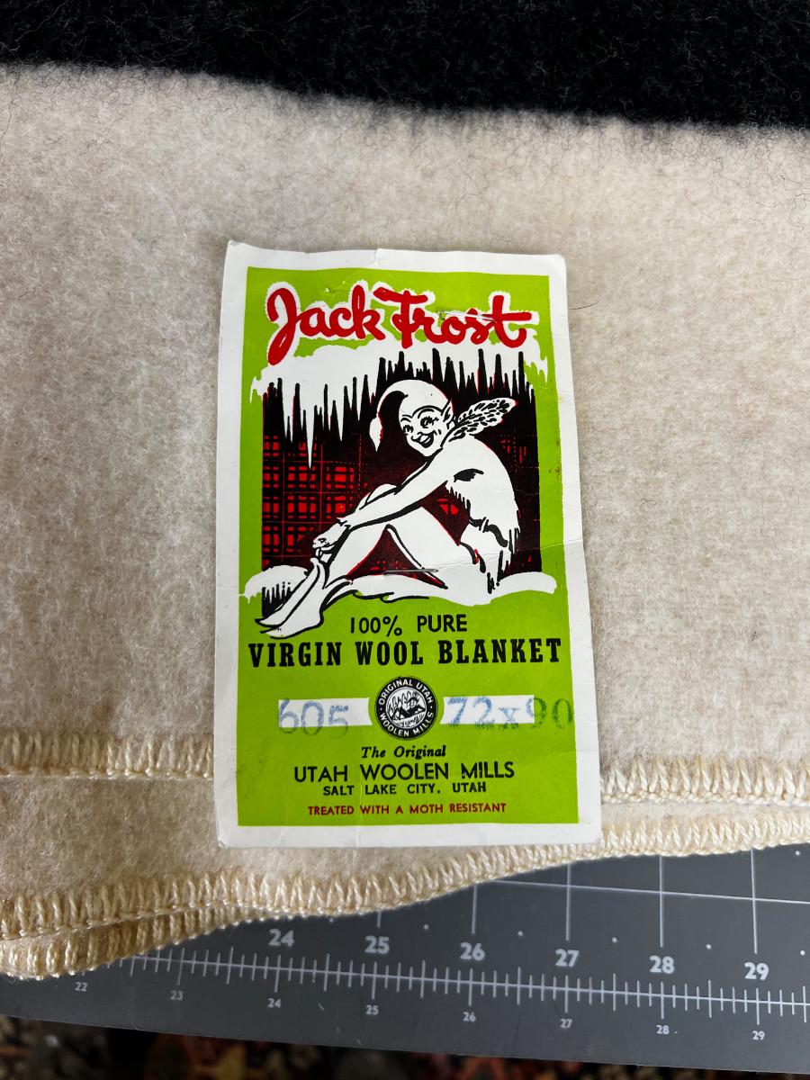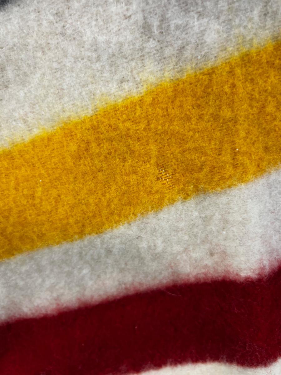 100% Wool, Jack Frost Hudson Bay Blanket Off White with Green Red Yellow Black Stripes