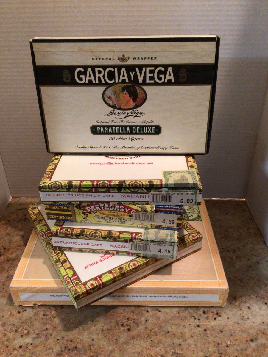 Empty cigar boxes for crafts.