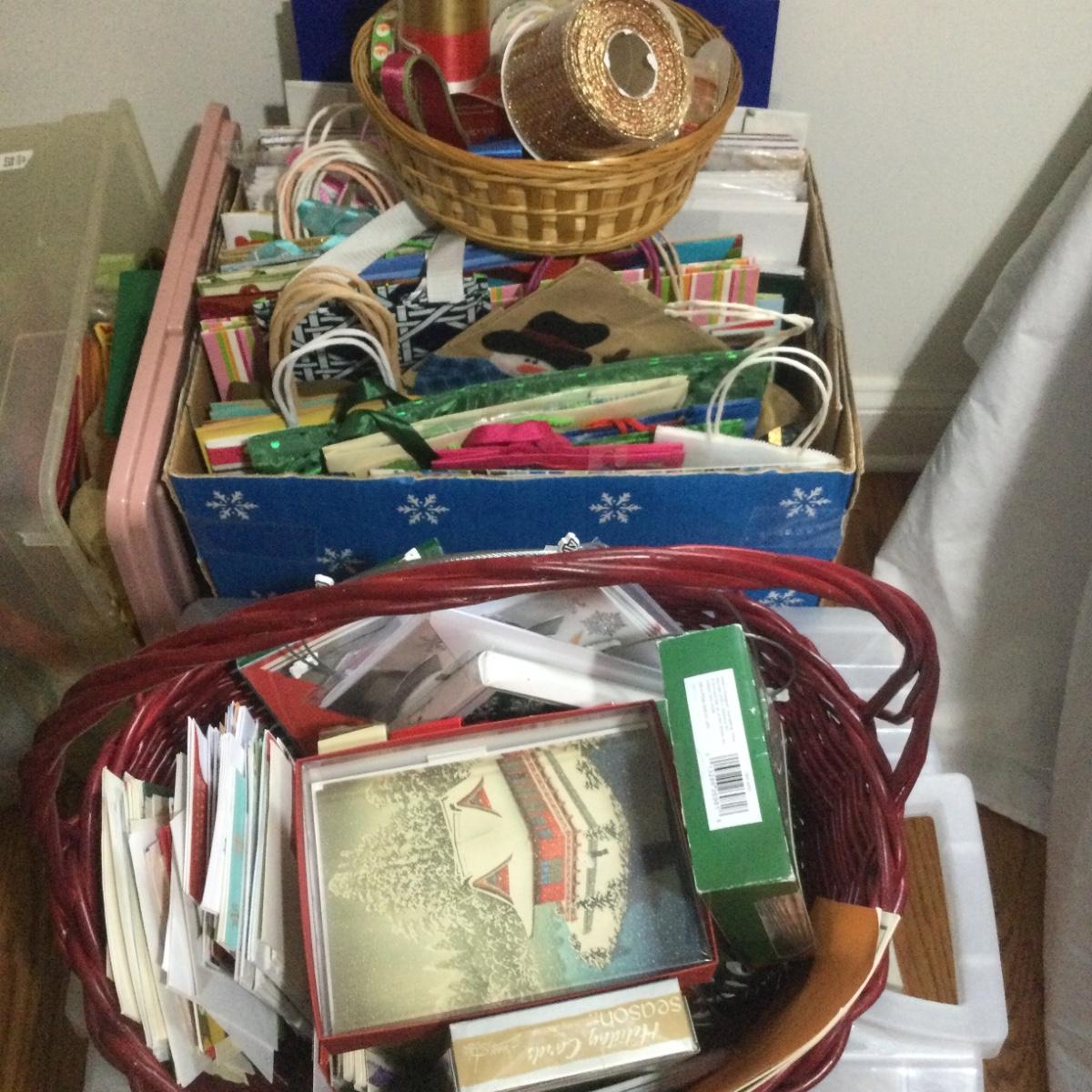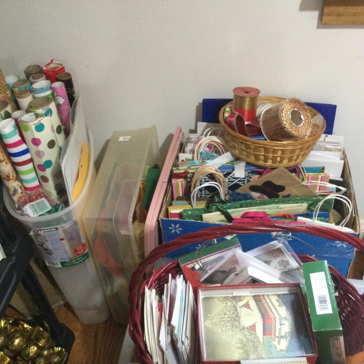 Lot contains gift wrap, bags, cards, ribbons etc.