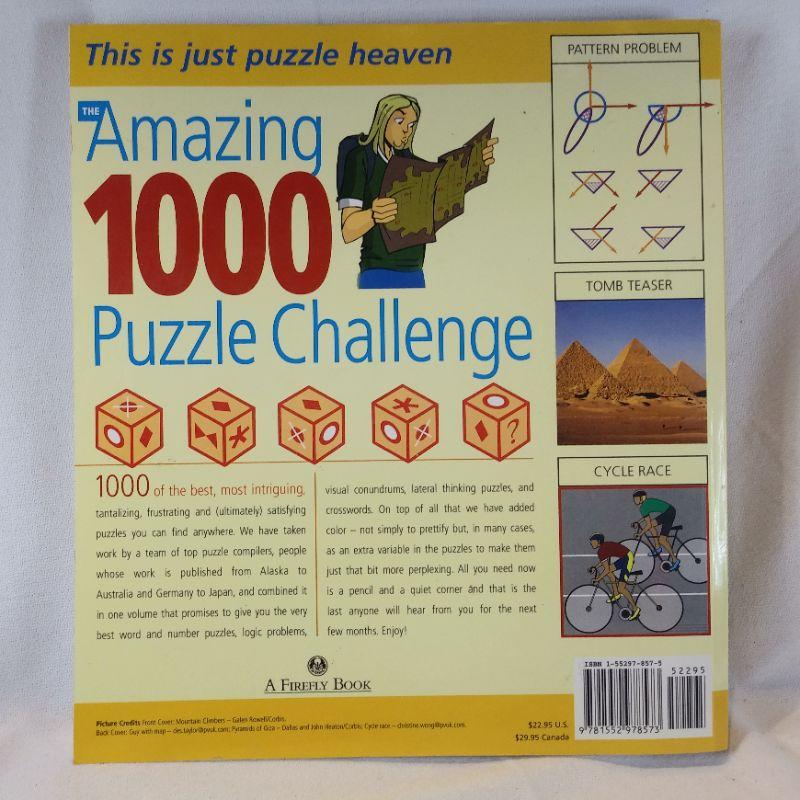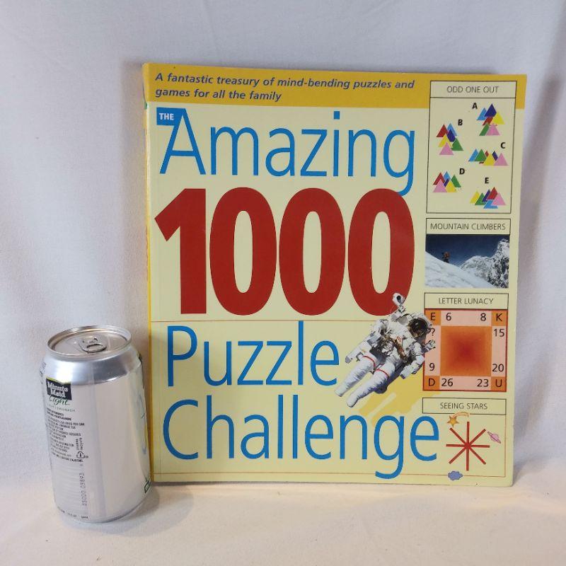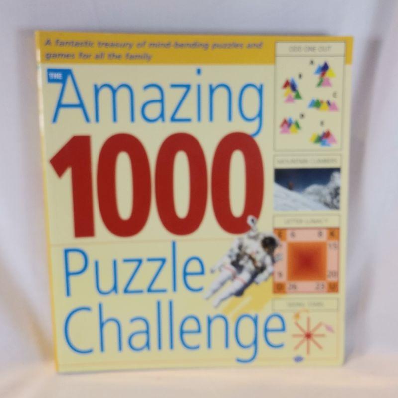 This item is "The Amazing 1000 Puzzle Challenge" Book. A large book of puzzles in color - 324 pages. Appears unused, looks new and is very clean. Printed in 2004. Very good gift condition. Puzzle Up!