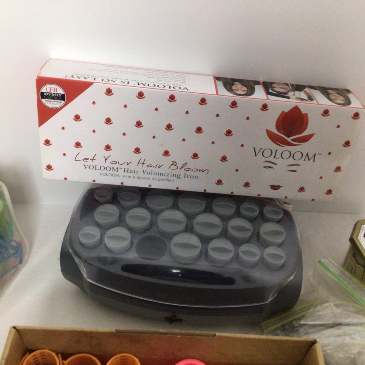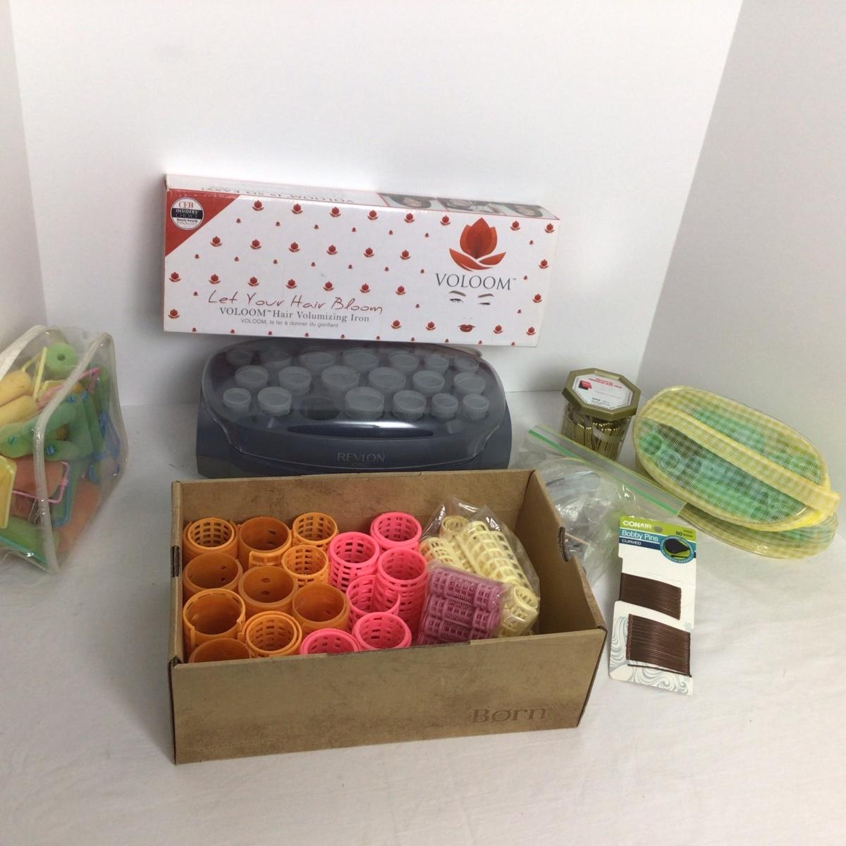 Hot curlers, assorted curlers and voloom flat iron.