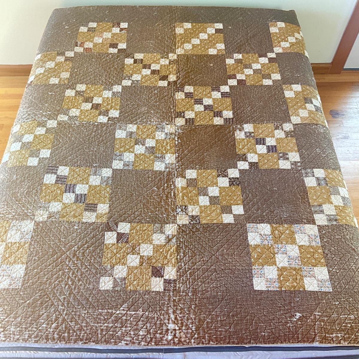 1000 Vintage Gold & Light Brown Patchwork Quilt