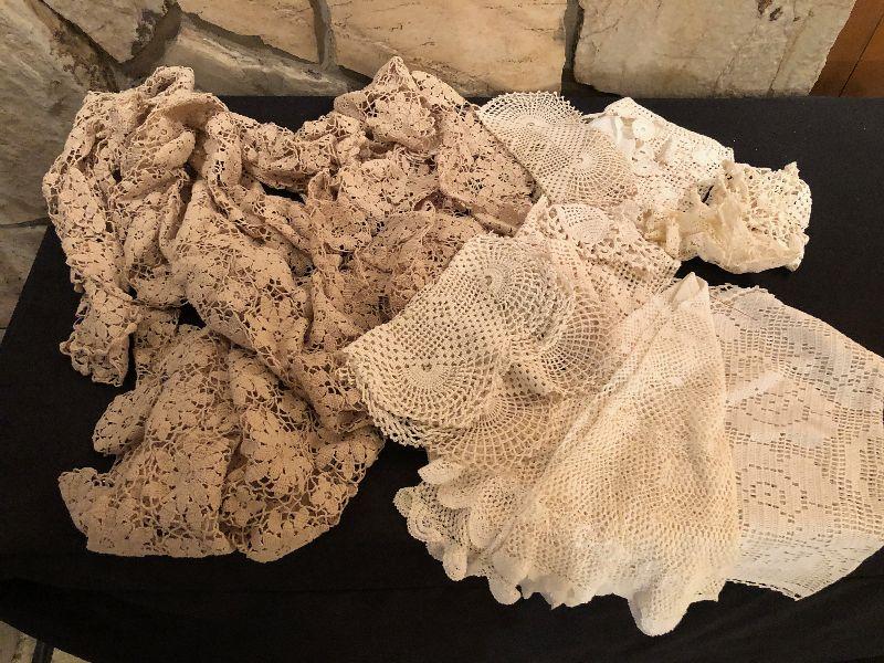 #1001 Crochet Table Cloth Parts and pieces not finished.