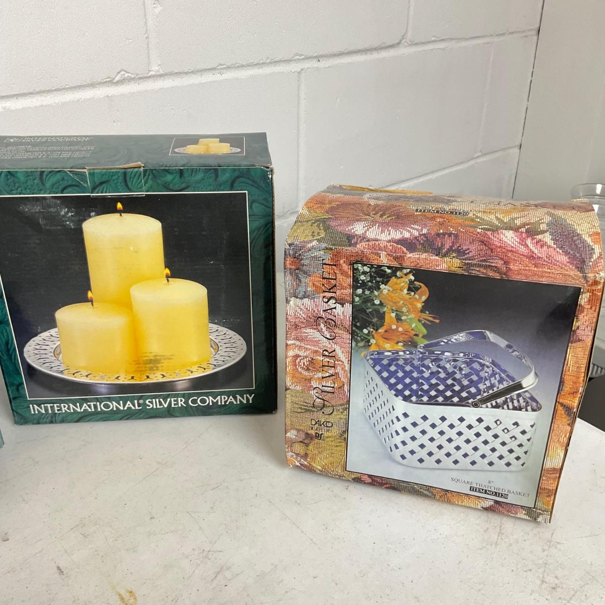 silver metal basket , new in box