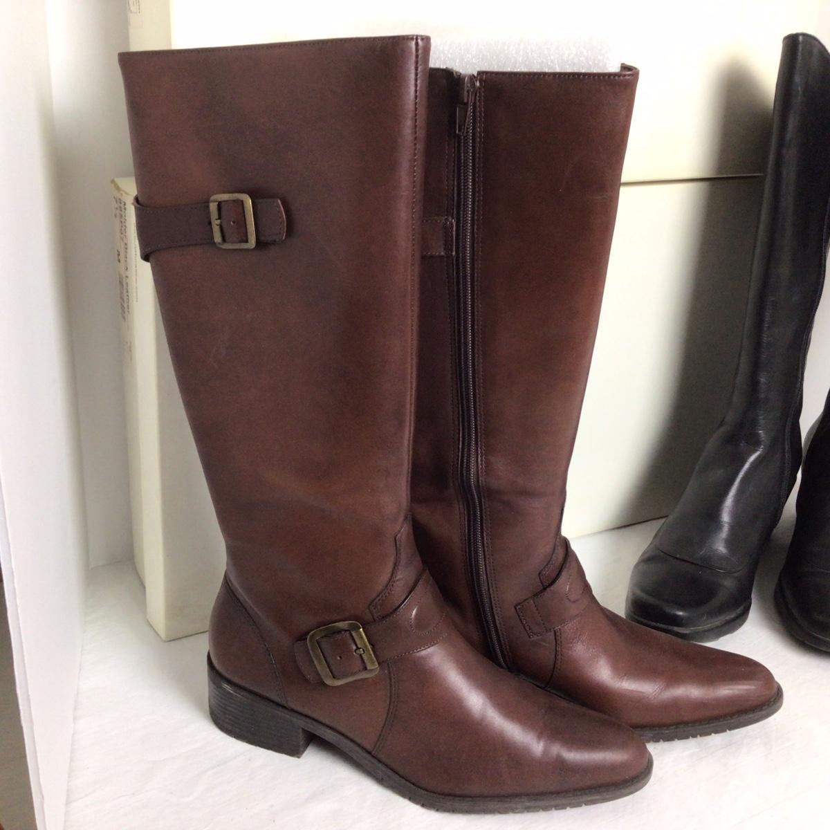 Lot contains 2 pair of boots, size 7.5. One piar is black leather and the other is brown leather.
