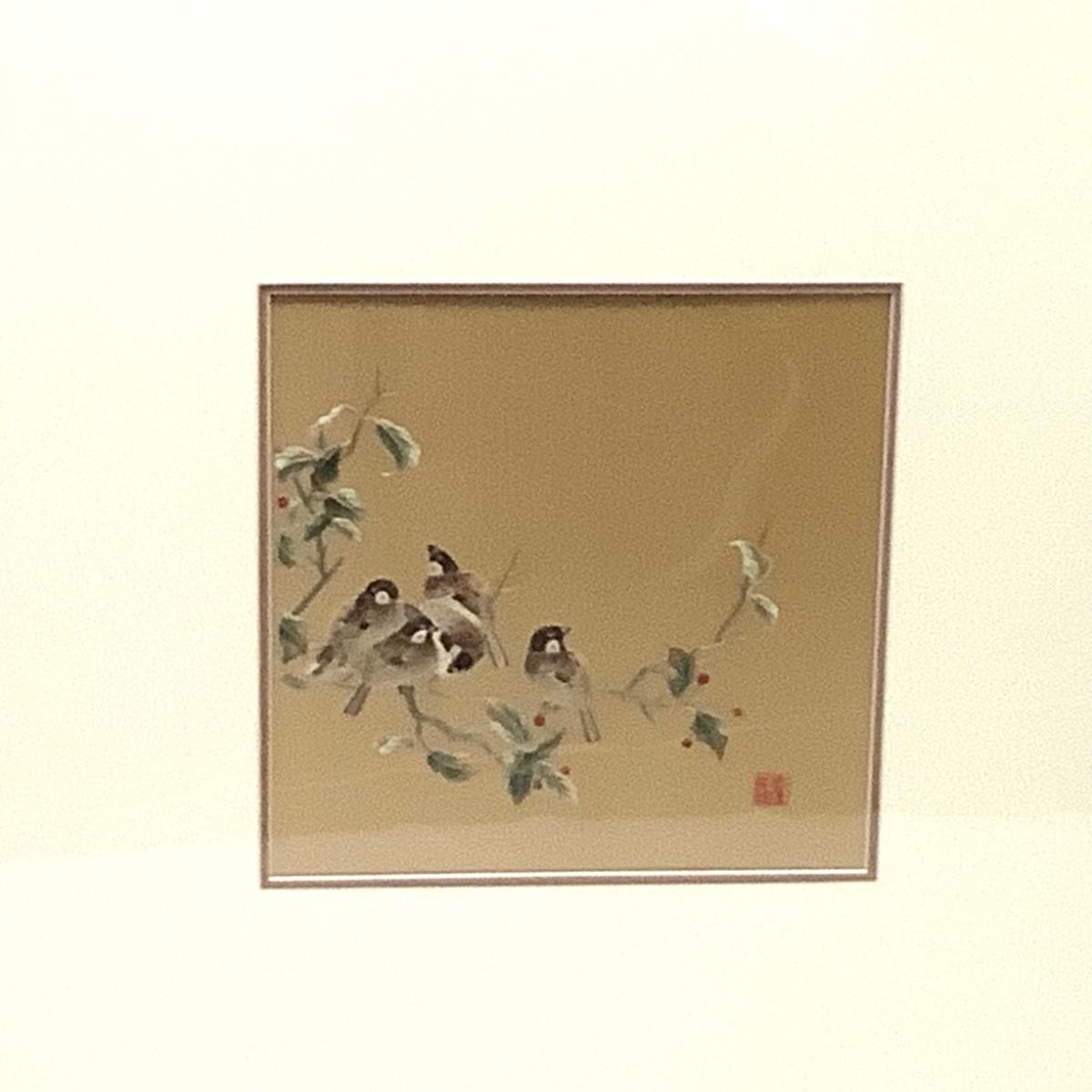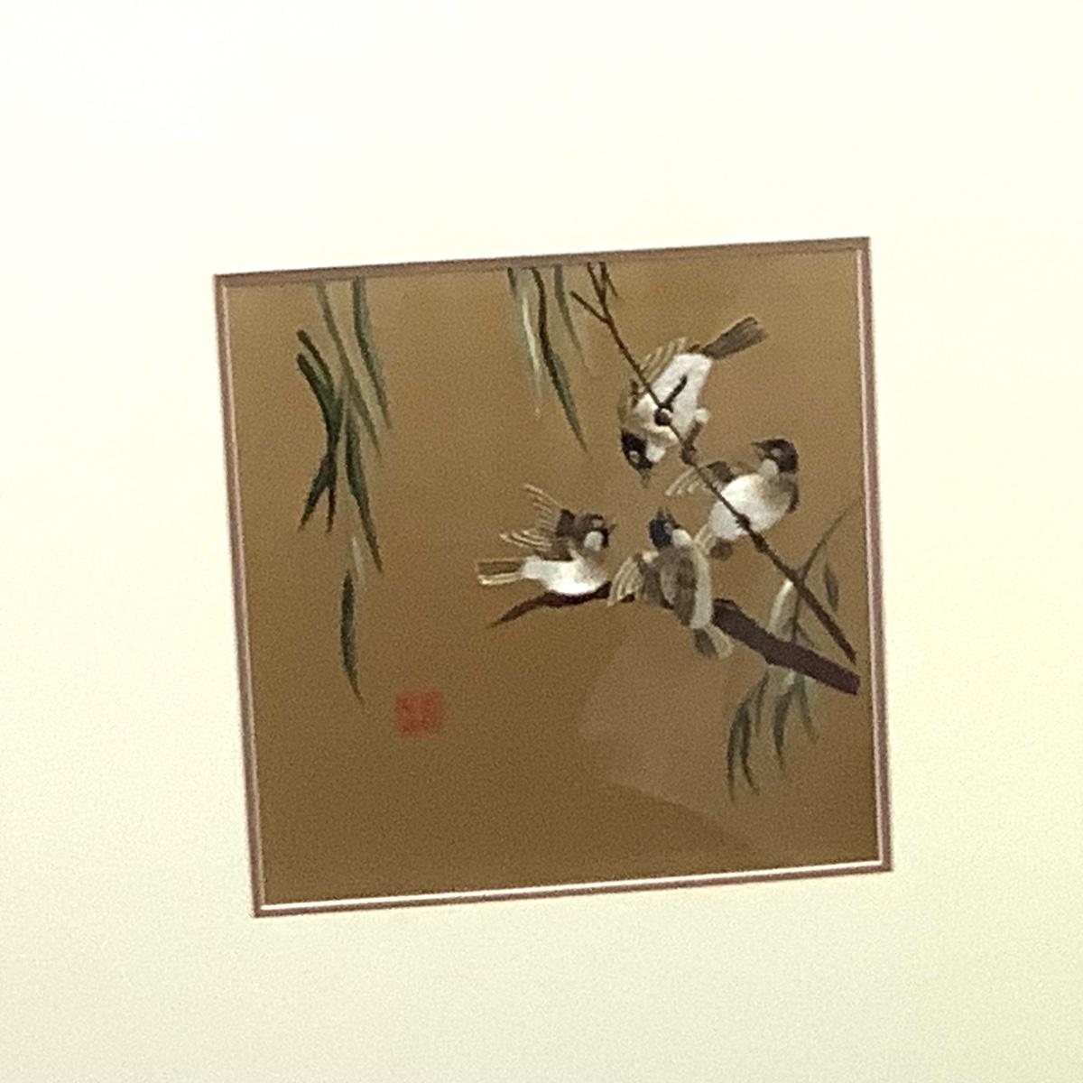 The pair of silk with hand embroidered bird scenes measure 27.5" wide x 49" high each, the pair is in matching frames with oriental style gold hardware for mounting. Signature is embroidered as well. Beautiful example of fine embroidery.
