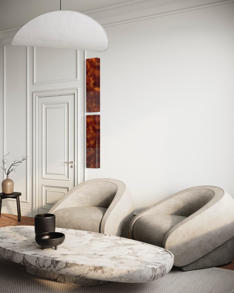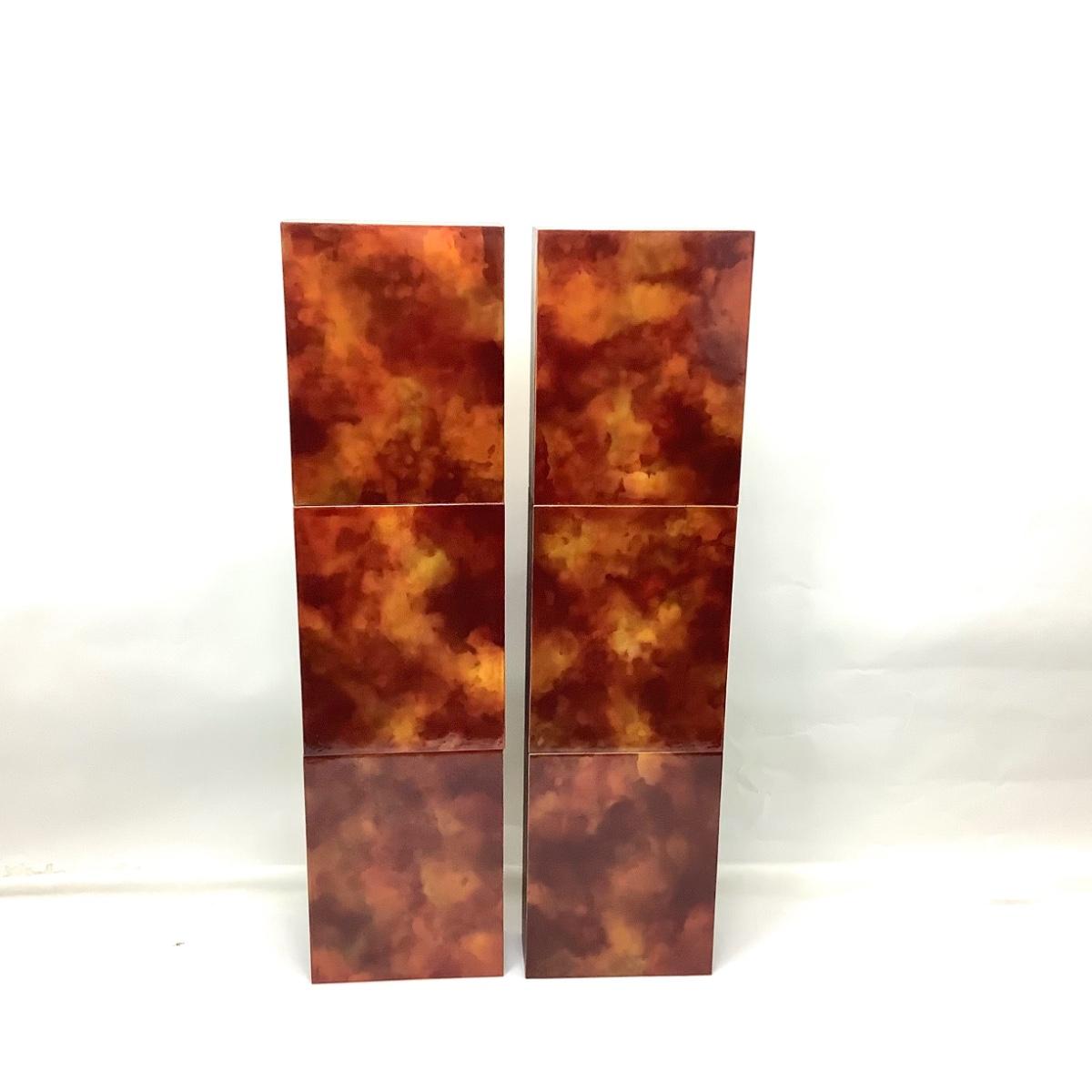Acrylic and urethane on panel by Christina Ramirez titled "Core 3", it is 2 pieces and each piece measures 8.5" x 33" x 3.5". The artist was born and raised in New Jersey, she currently resides in Arizona where she is represented by Wilde Meyer Gallery. She has been the recipient for many grants and awards. Her inspiration is taken from the world around her.