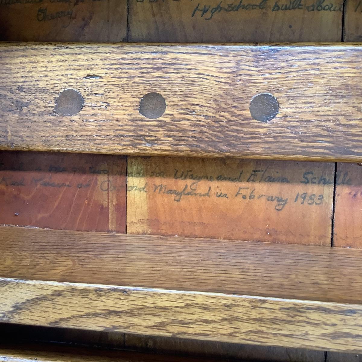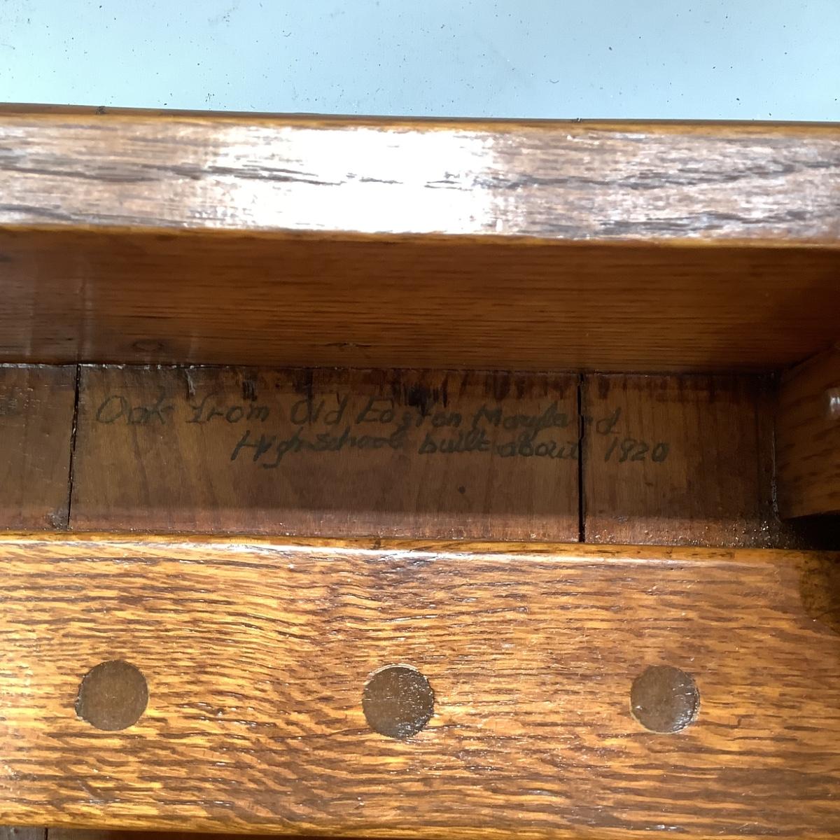 Tables were constructed from the wood at the 1920"s Easton High School Wood from deomolition.