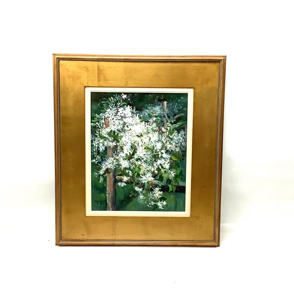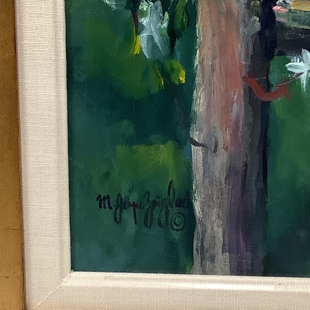 The oil painting is by local artist M.Joyce Zeigler from Ridgely, Md. It measures 27.25" wide x 31.5" high .Joyce teaches oil painting in her country studio near Ridgely, MD. Her artwork can be found in private collections throughout the USA and Europe.