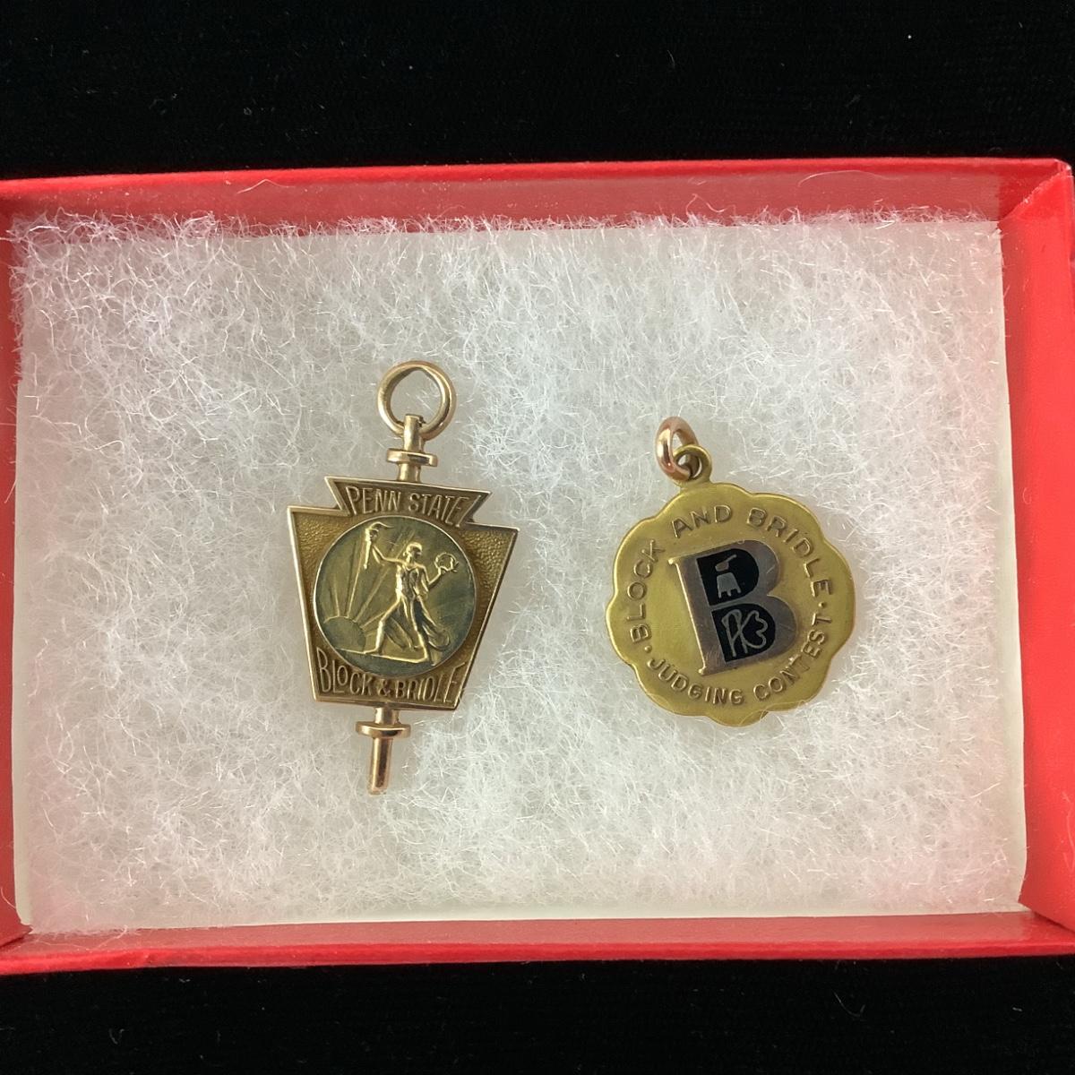 1.) 10kt yellow gold Penn state Block & Bridle with inscription on back weighs 3.9dwt
