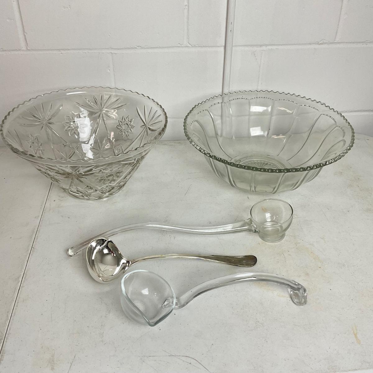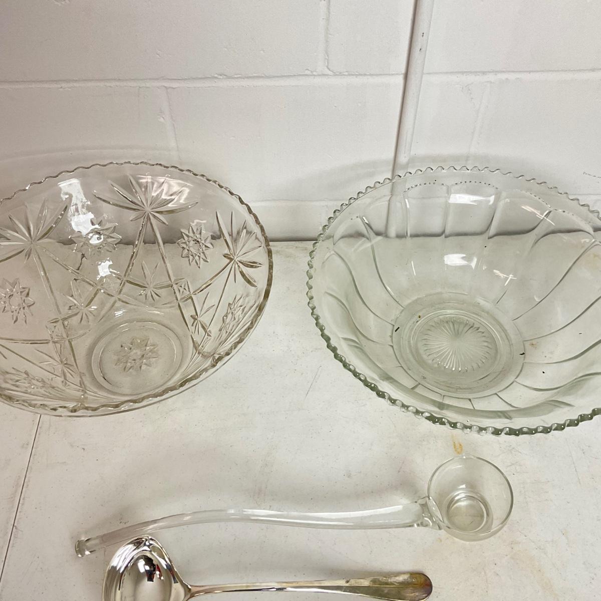 1007 Two Large Pressed Glass Punch Bowls with Three Ladles