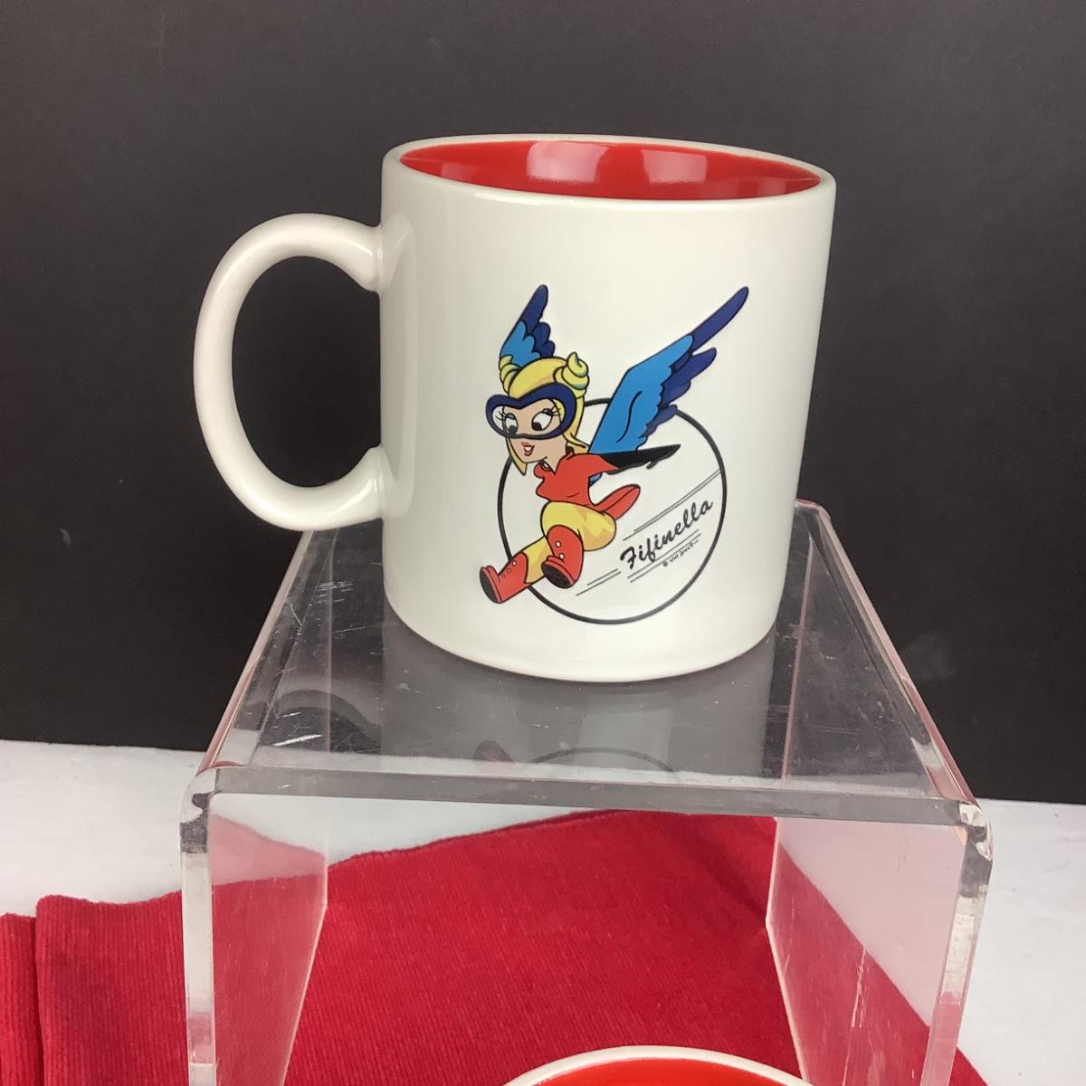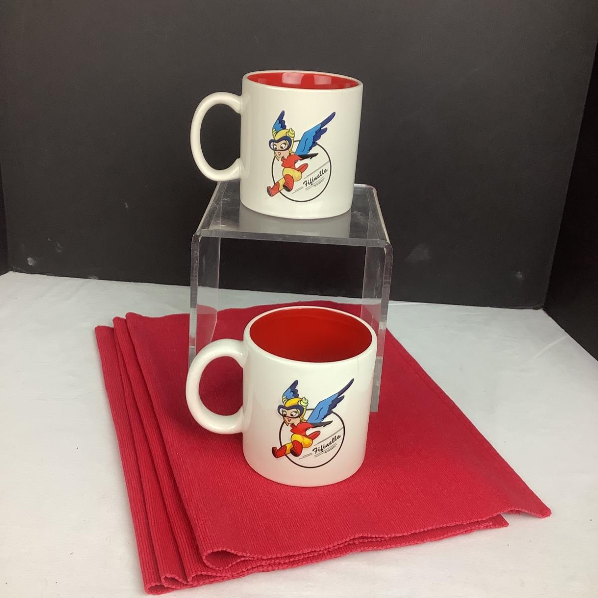 FiFinella Wasp WWII pilot Coffee mugs with 4 red placemats