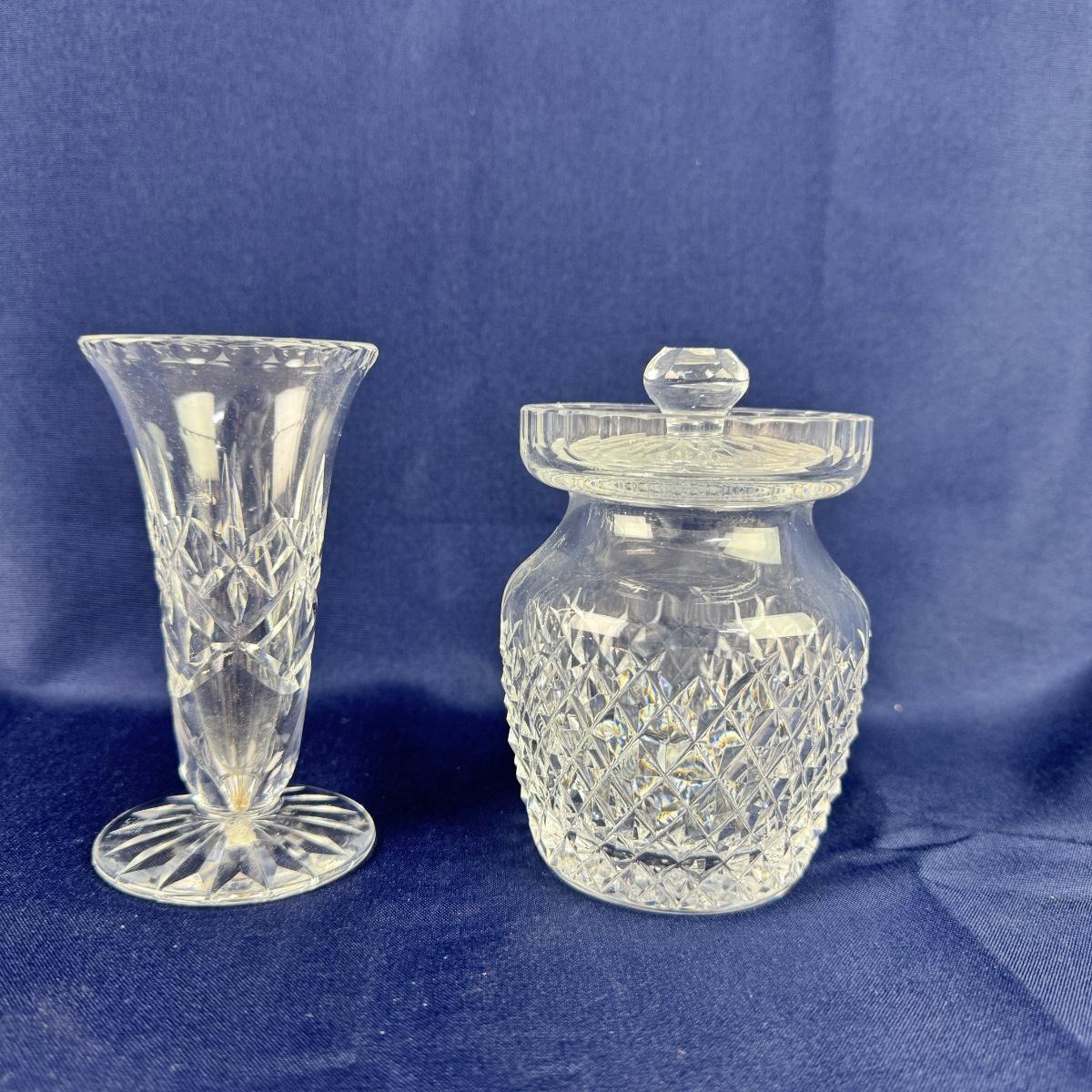 1009 Waterford Crystal Mustard Jar with Webb Crystal Bud vase