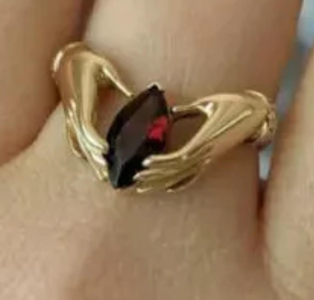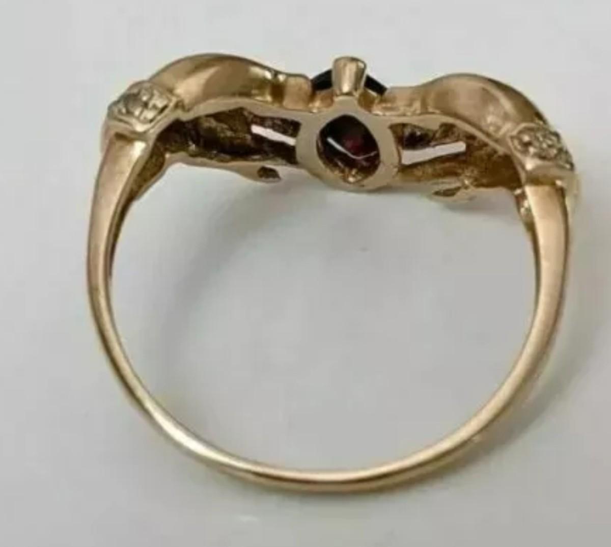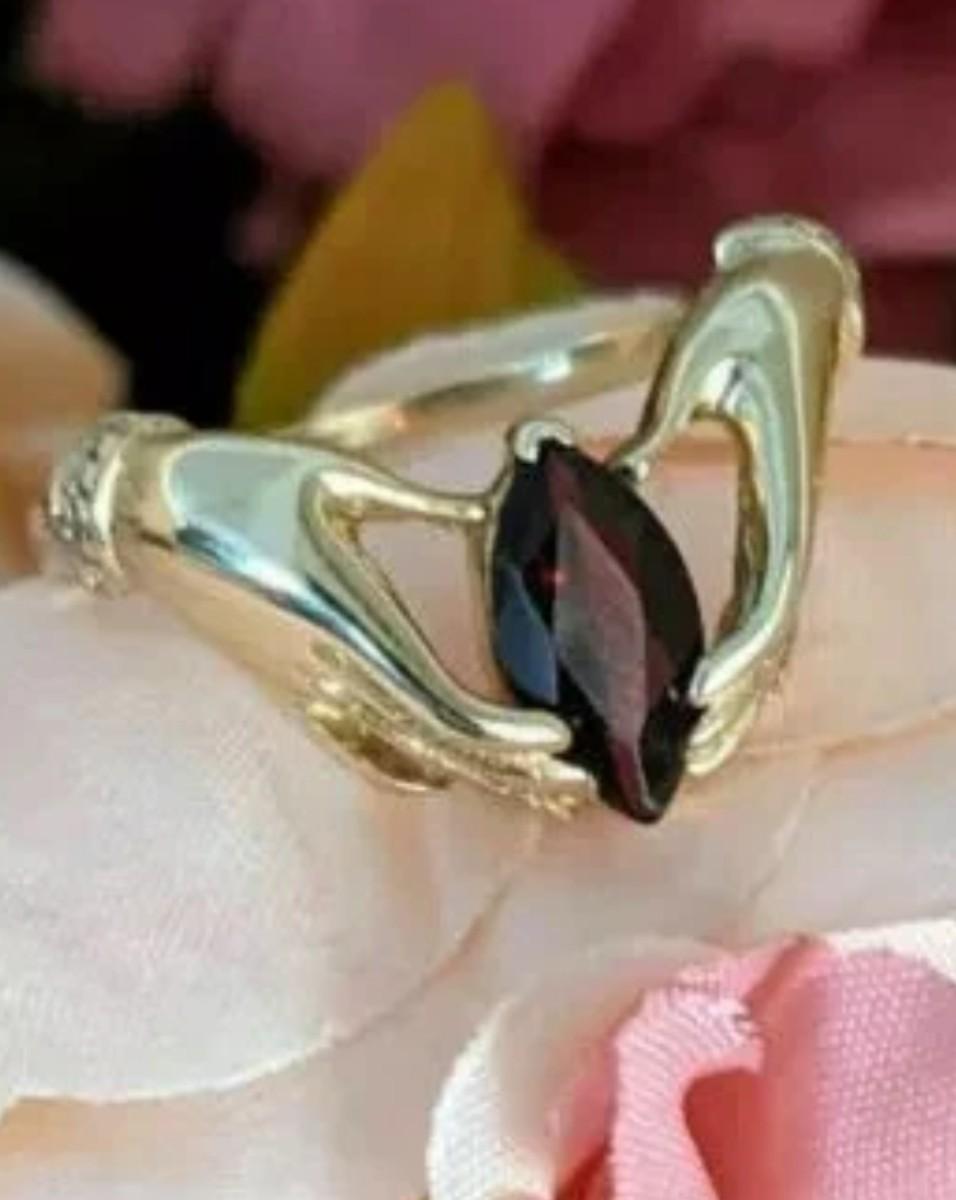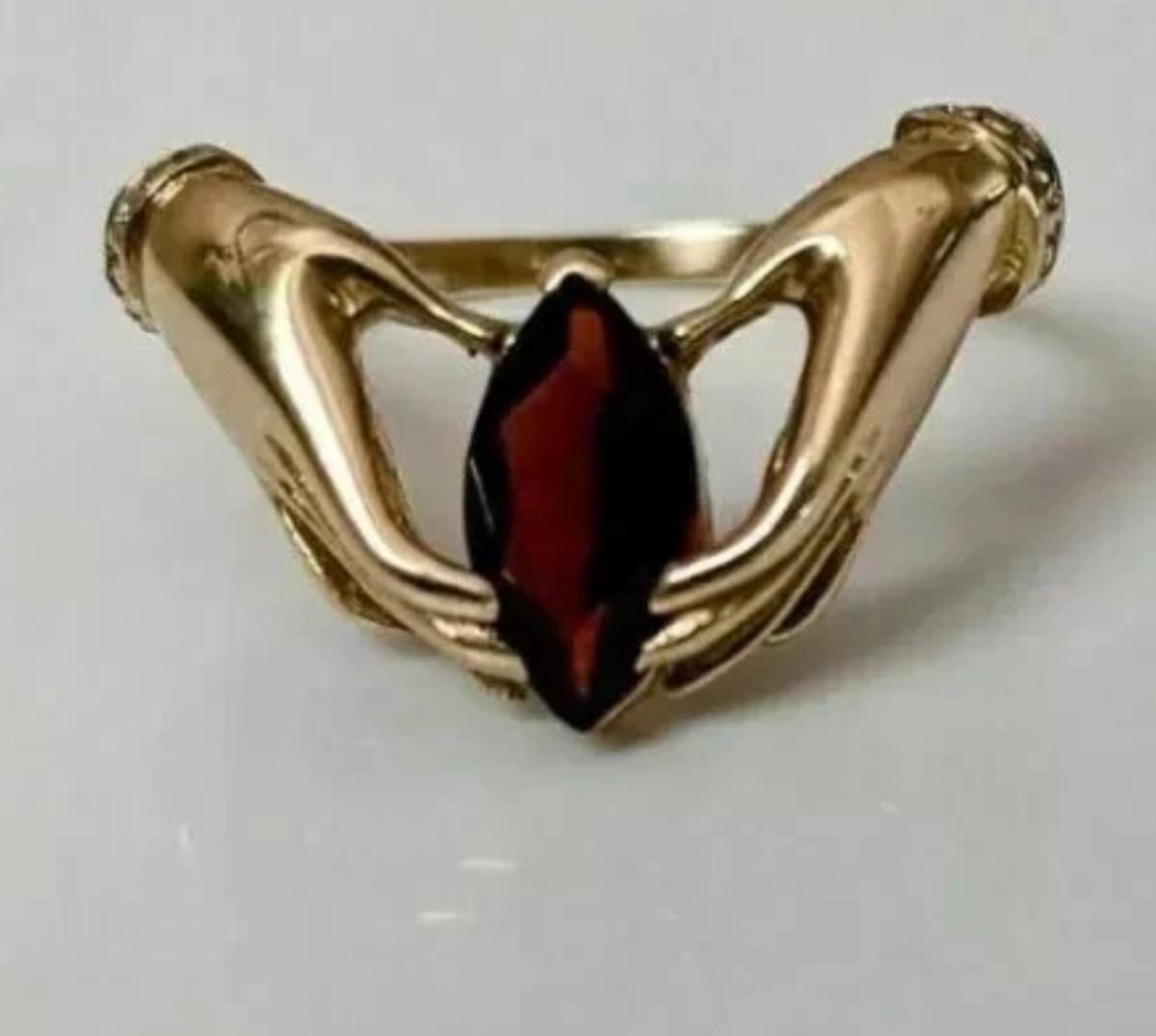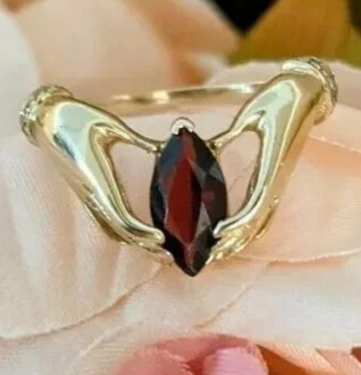 Garnet is slightly lighter colored than picture shows. Very pretty Ring