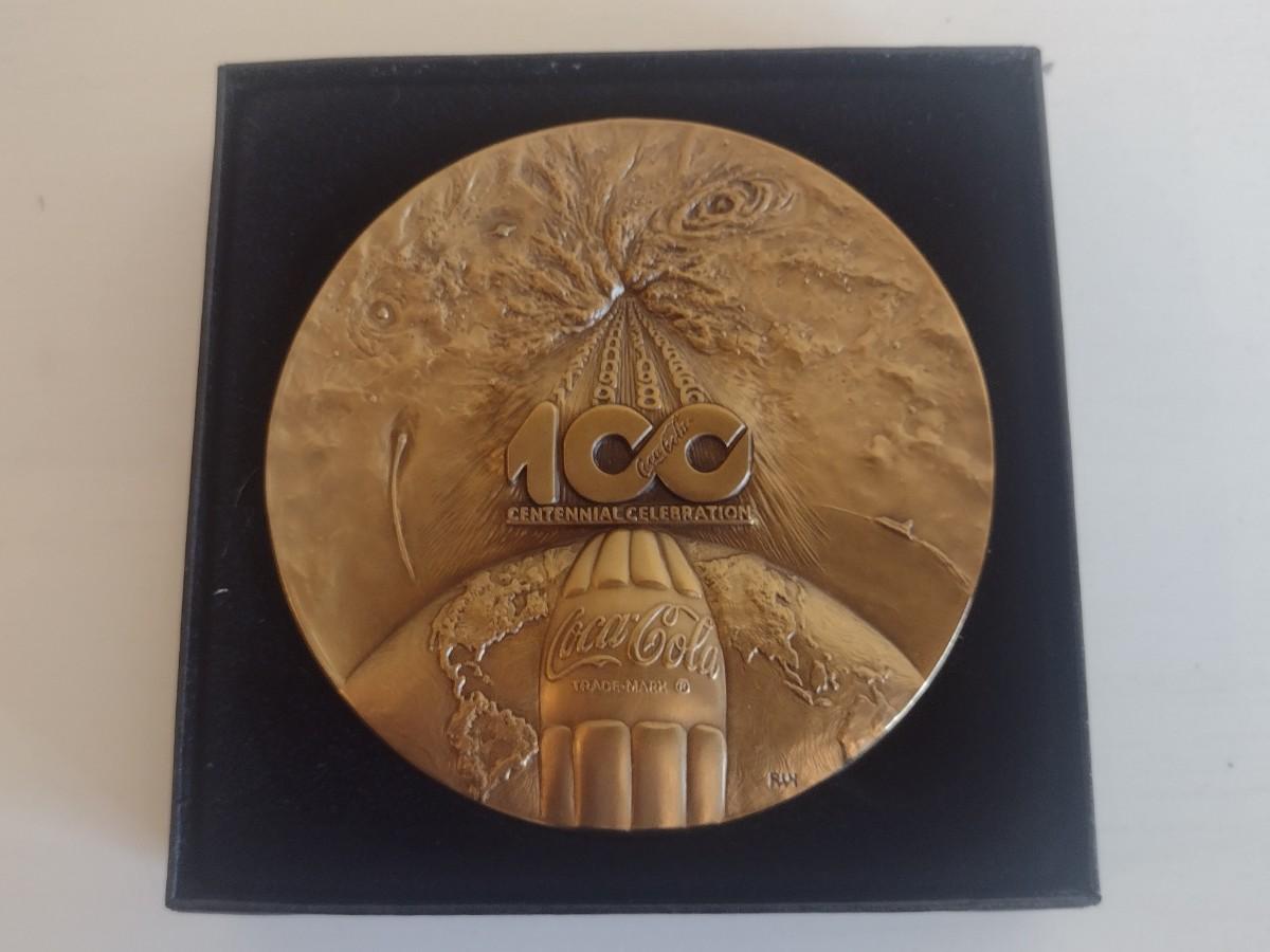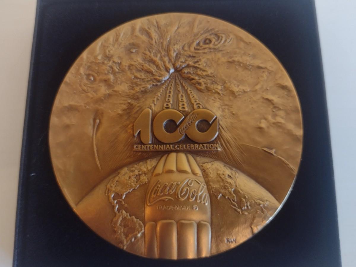 100th Anniversary 1886-1986 Coca-Cola Centennial Celebration Double-Sided Bronze Medallion in Original Box