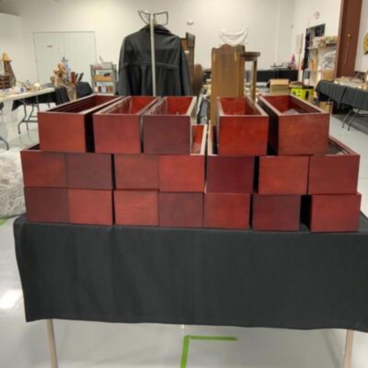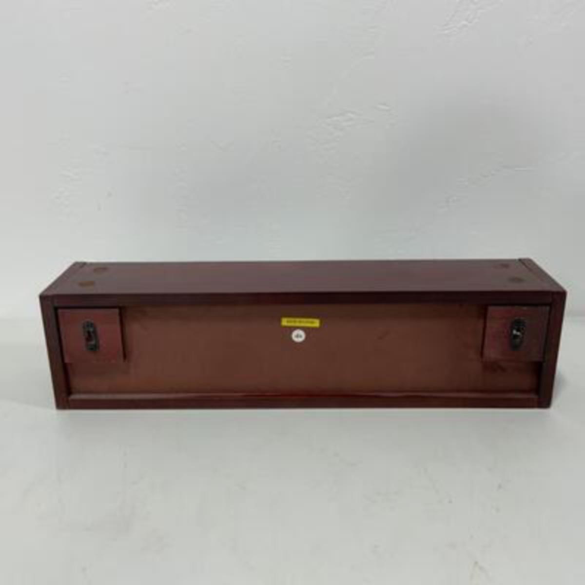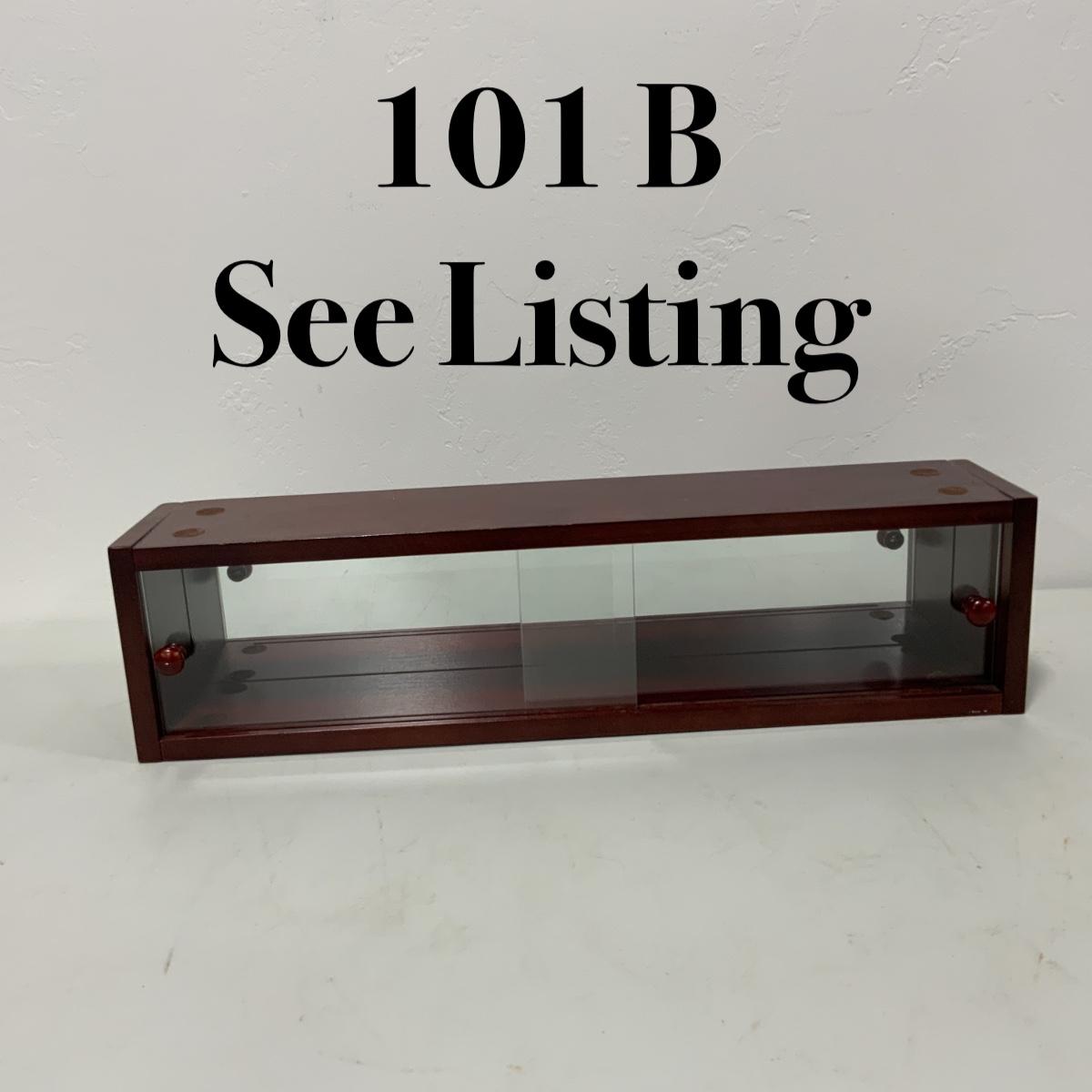 ***THESE ARE THE SAME AS 101. I AM HUMAN AND FORGOT TO CHANGE THE QUANTITY ON THE FIRST LISTING, SORRY FOR THE CONFUSION*** There are EIGHTEEN Display Shelves available. They are all the same style and age. They have two sliding glass doors with wood knobs on them, and glass mirrored back. They would work well hanging on a wall or sitting on a shelf to showcase items. The shelves measure 24”x6”x5”. Interior measurements are 22.5” wide and 3.25” deep. There are TWO shelves that have issues with them, one is missing a door, one has missing knobs on the doors. Those cases will be sold last and a price adjustment will be made on your invoice. Please contact me if you have any questions. Please see photos for details and condition. ::: Shipping is NOT available on this lot. If you have any questions regarding this lot please contact the auctioneer either via this website, by direct email or by phone. PICK UP TIMES and other important information can be found in the TERMS and DESCRIPTION of the auction. Please take a look for pertinent information. Thanks!