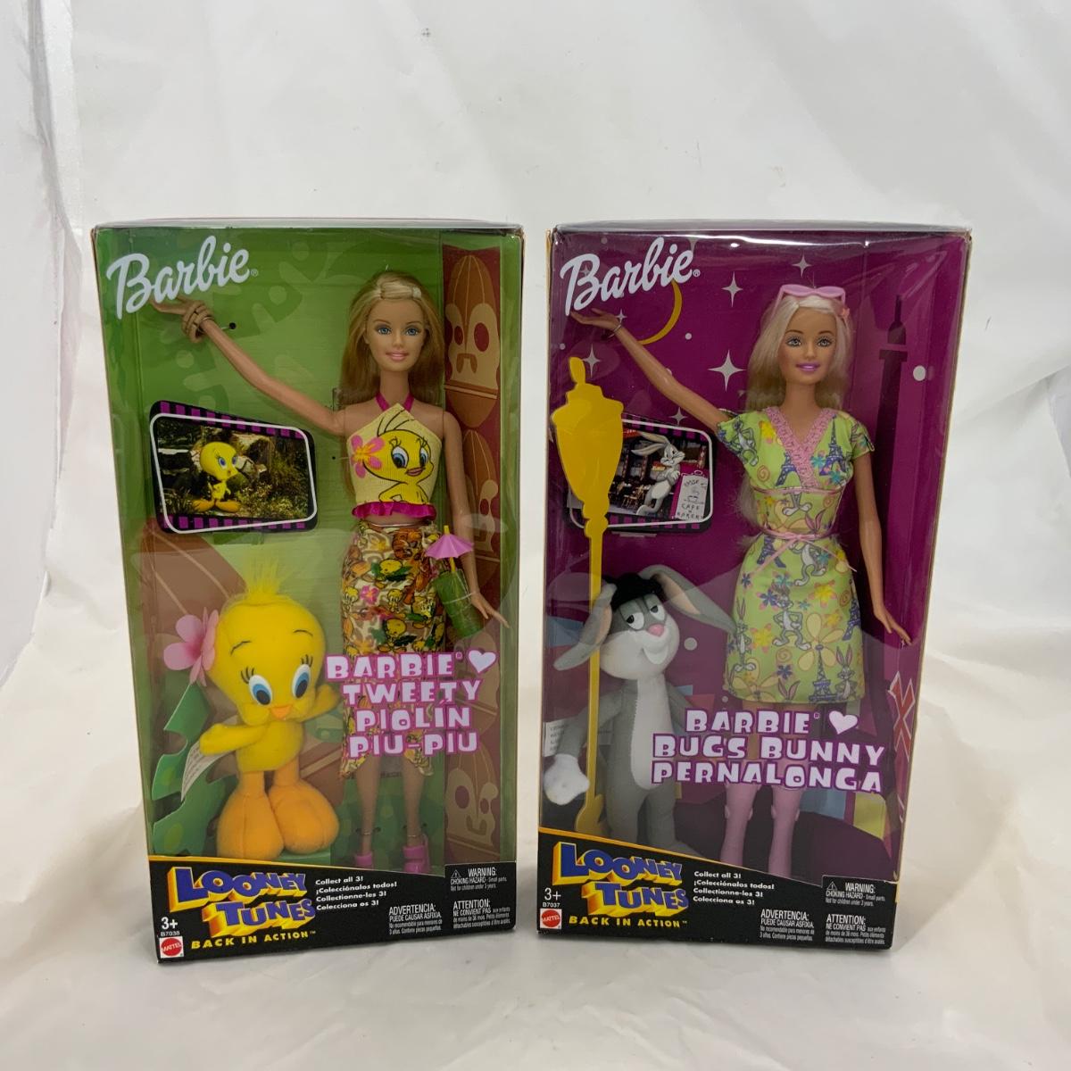 All these icons in one lot! Two Barbies with Two epic stars of the small screen, Tweety Bird and Bugs Bunny. Both dolls were produced in 2003 by Mattel. New, in Box. Please see photos for details and condition. !!! Proceeds from this auction will be donated to the NEW COMMUNITY SHELTER in Green Bay, Wisconsin. Please see Sale Description to the Left for more information. !!! ::: Shipping is available on this lot. If you require shipping you must let us know at the close of the auction. We will coordinate with you after the item has been won. Shipping fees will include insurance up to or exceeding the value of all items being mailed. If you have any questions regarding this lot please contact the auctioneer either via this website, by direct email or by phone. PICK UP TIMES and other important information can be found in the TERMS and DESCRIPTION of the auction. Please take a look for pertinent information. Thanks!