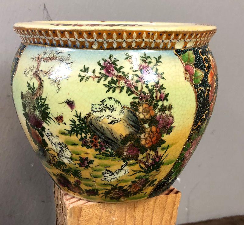 Appears to be Antique; Butterfly, cats and blossoms 6" tall 7" Wide