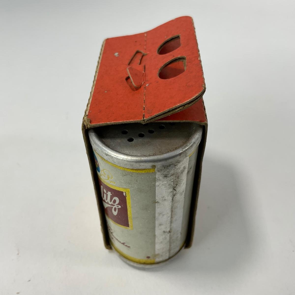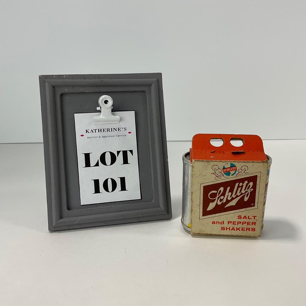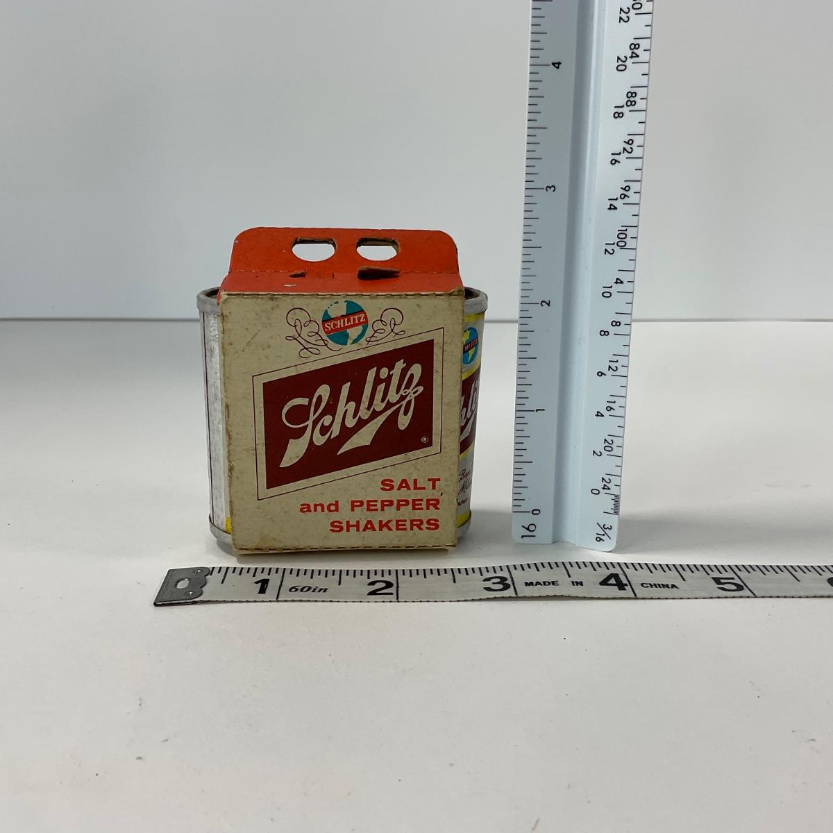 One set of 1961 Schlitz salt and pepper shakers in packaging. There is some wear and slight damage to packaging. Please see photos for details and condition. ::: Shipping is available on this lot. If you require shipping you must let us know at the close of the auction. We will coordinate with you after the item has been won. Shipping fees will include insurance up to or exceeding the value of all items being mailed. If you have any questions regarding this lot please contact the auctioneer either via this website, by direct email or by phone. PICK UP TIMES and other important information can be found in the TERMS and DESCRIPTION of the auction. Please take a look for pertinent information. Thanks!