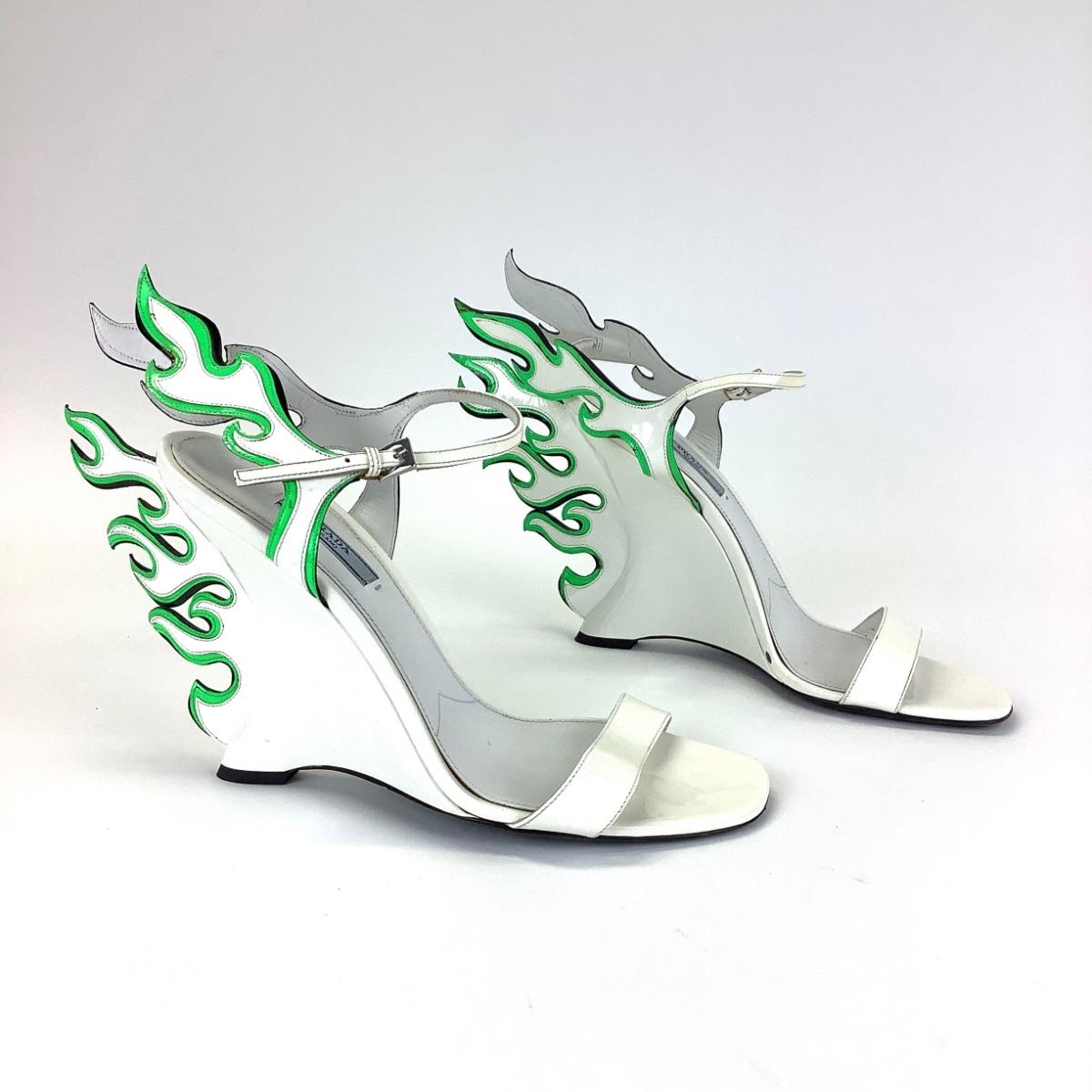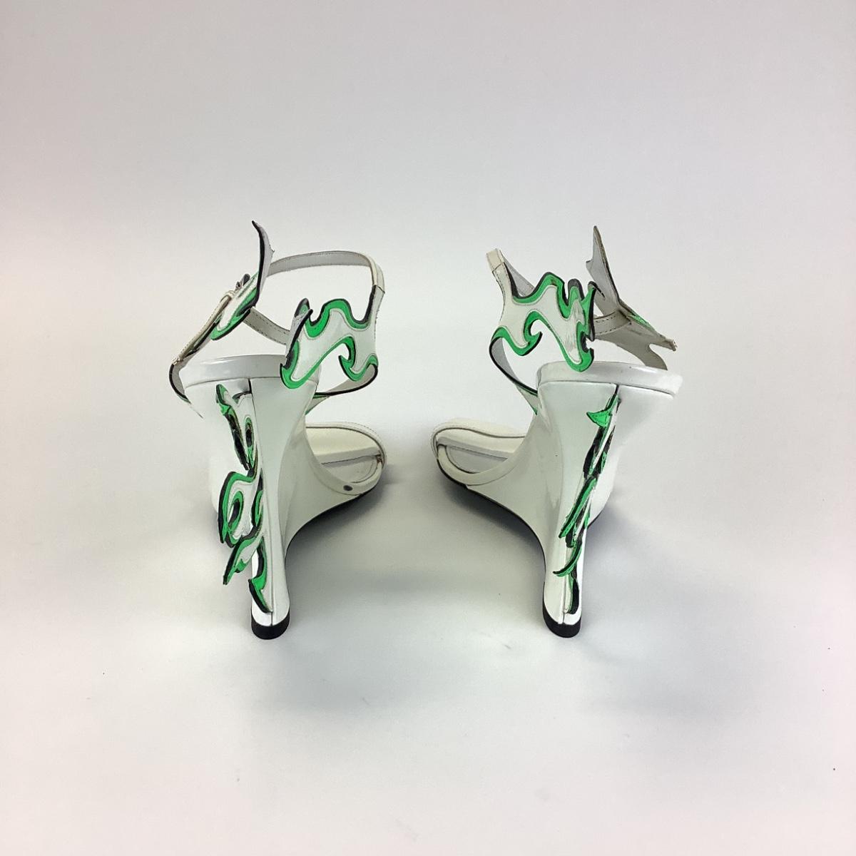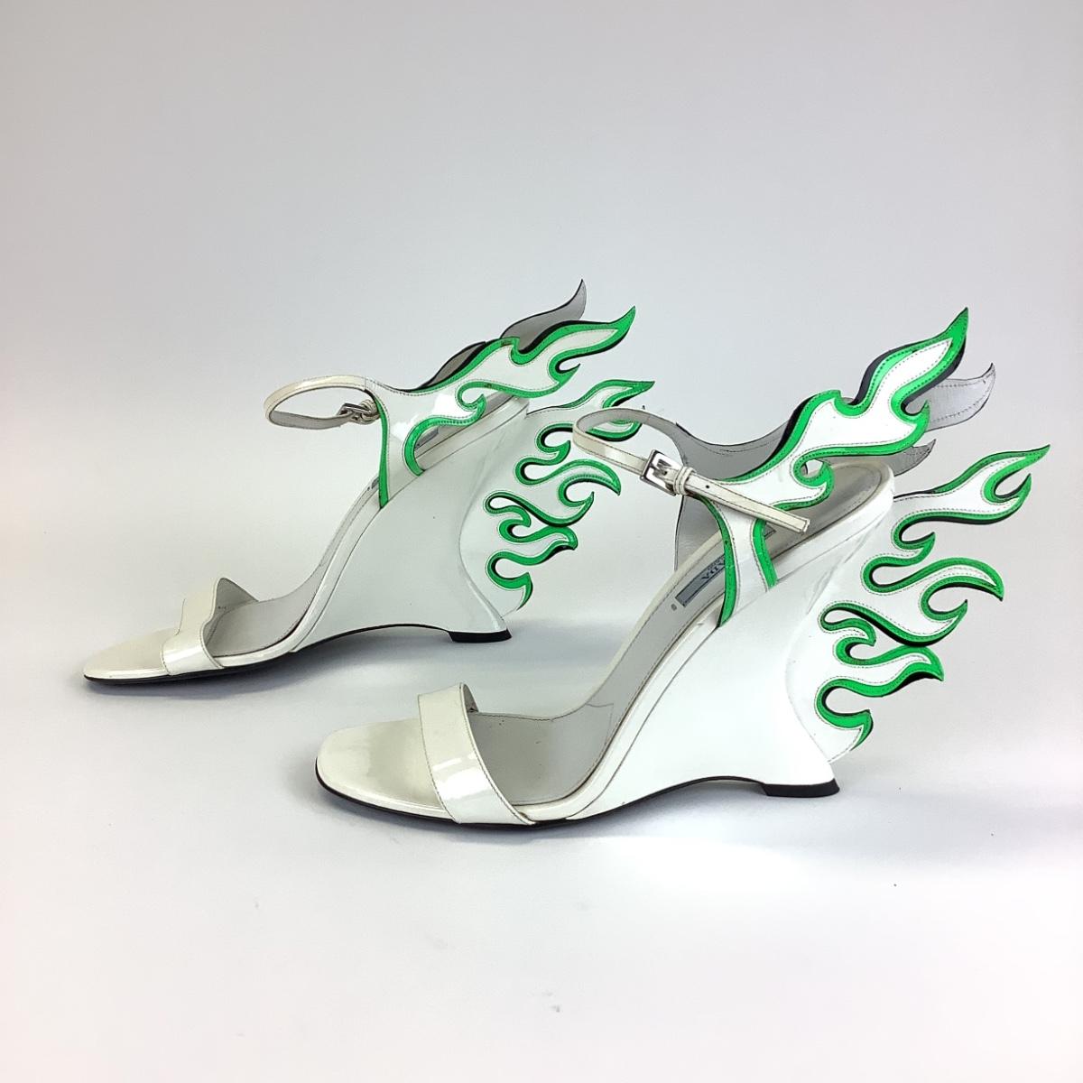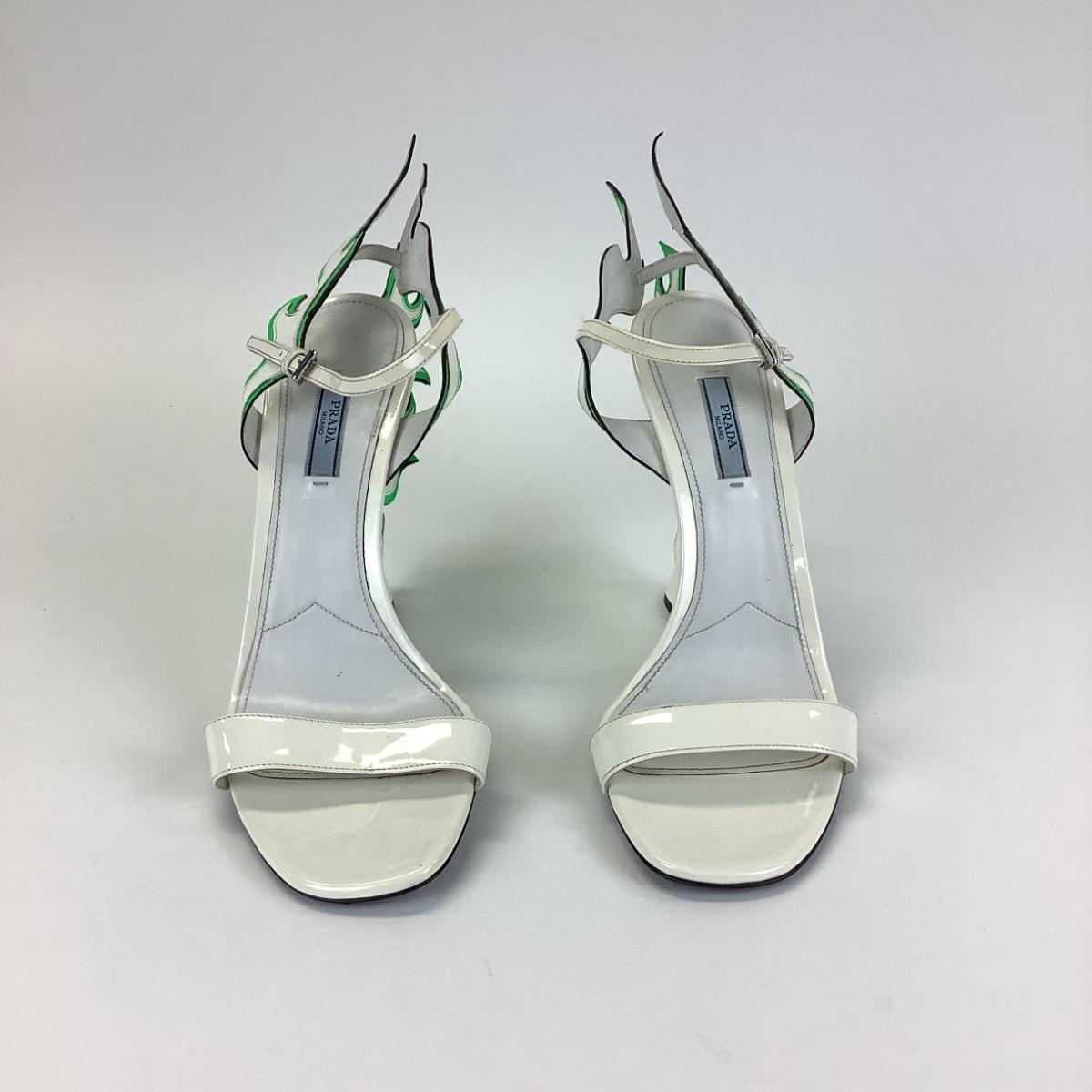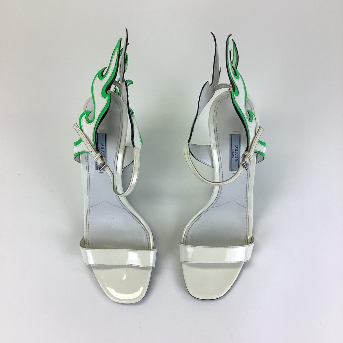 101 PRADA Flame Patent Leather Green and White Sandals Size 40 1/2