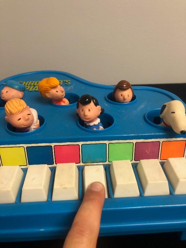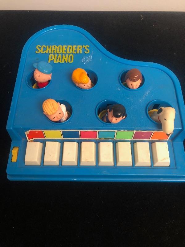 1975 Child guidance Schroders piano featuring peanuts cast including Snoopy needs batteries. Unique piece. Vintage used condition