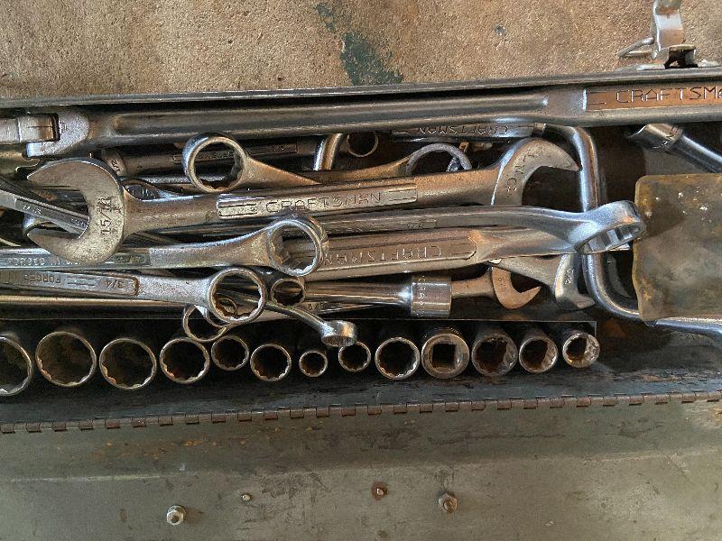 101: Vintage Craftsman Tool Box with Wrenches and Sockets