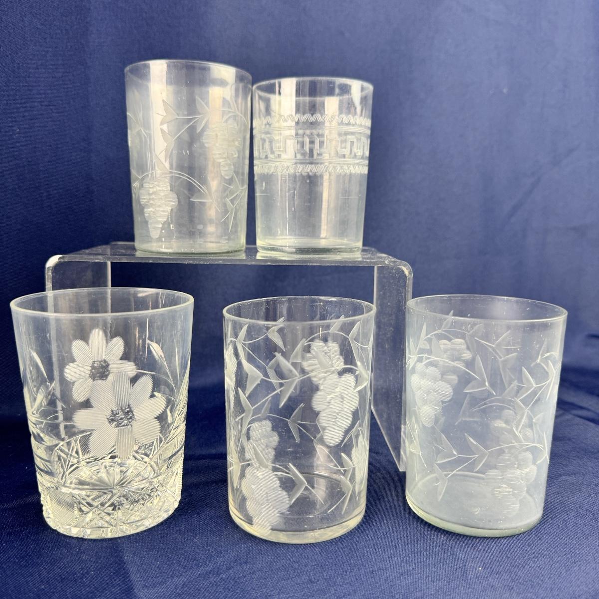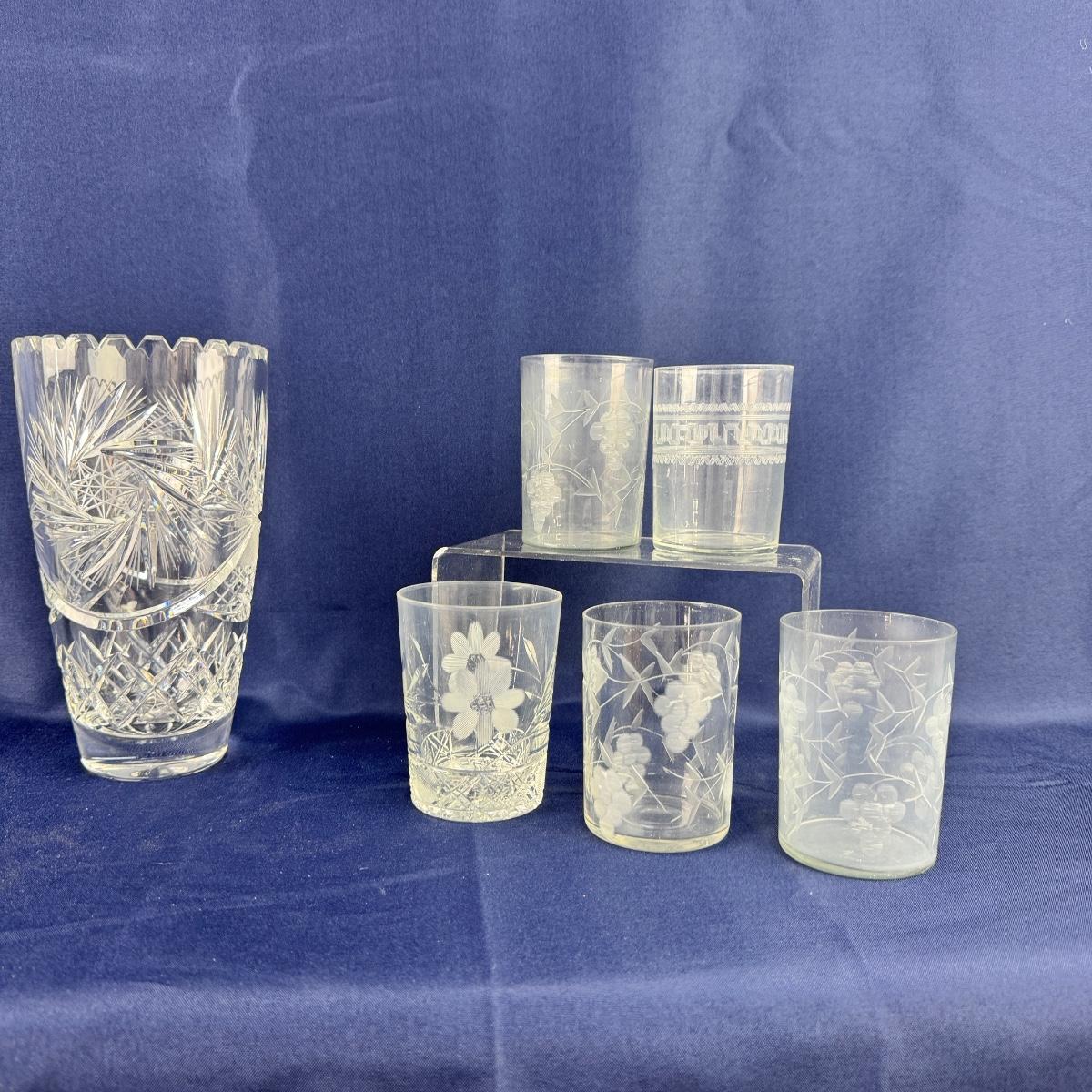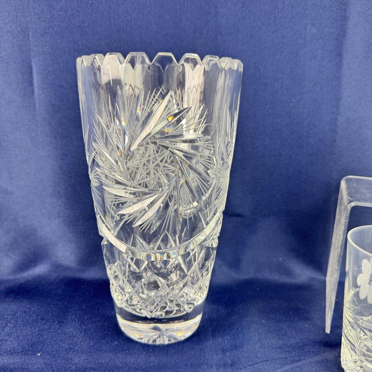 1010 Antique American Brilliant Cut Crystal Vase with Early Etched Glasses
