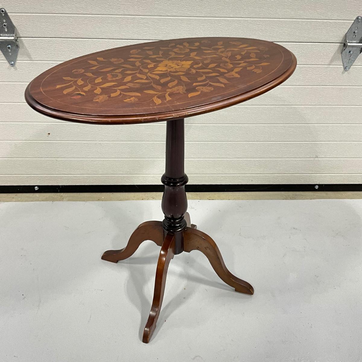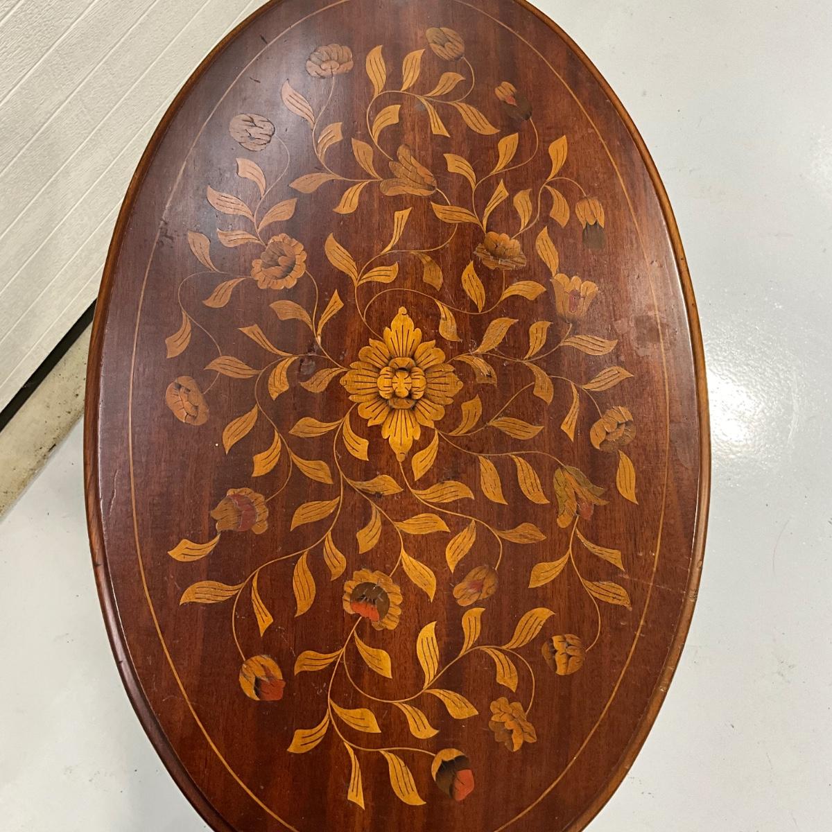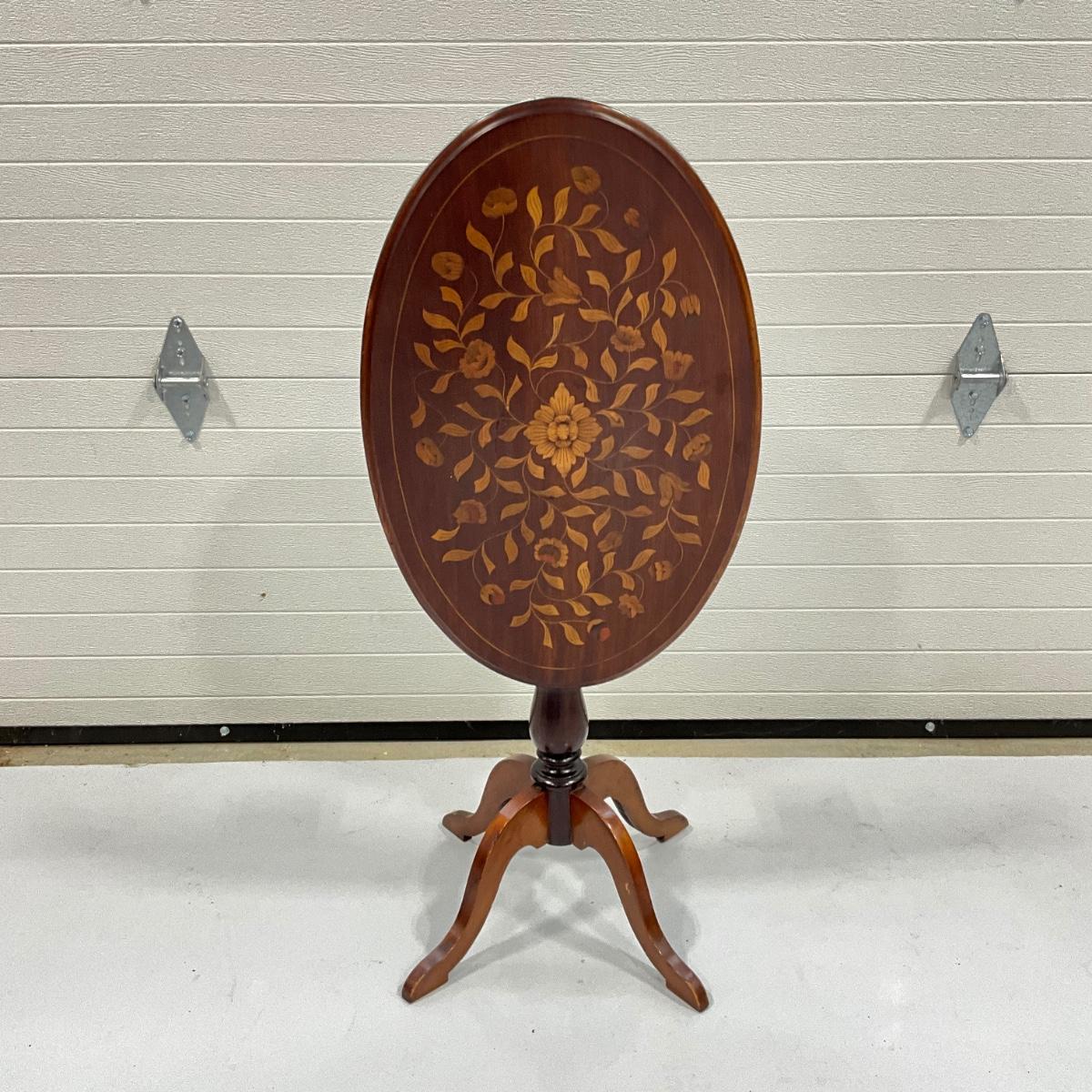 1011 Antique French Style Inlaid Oval Tilt top Table